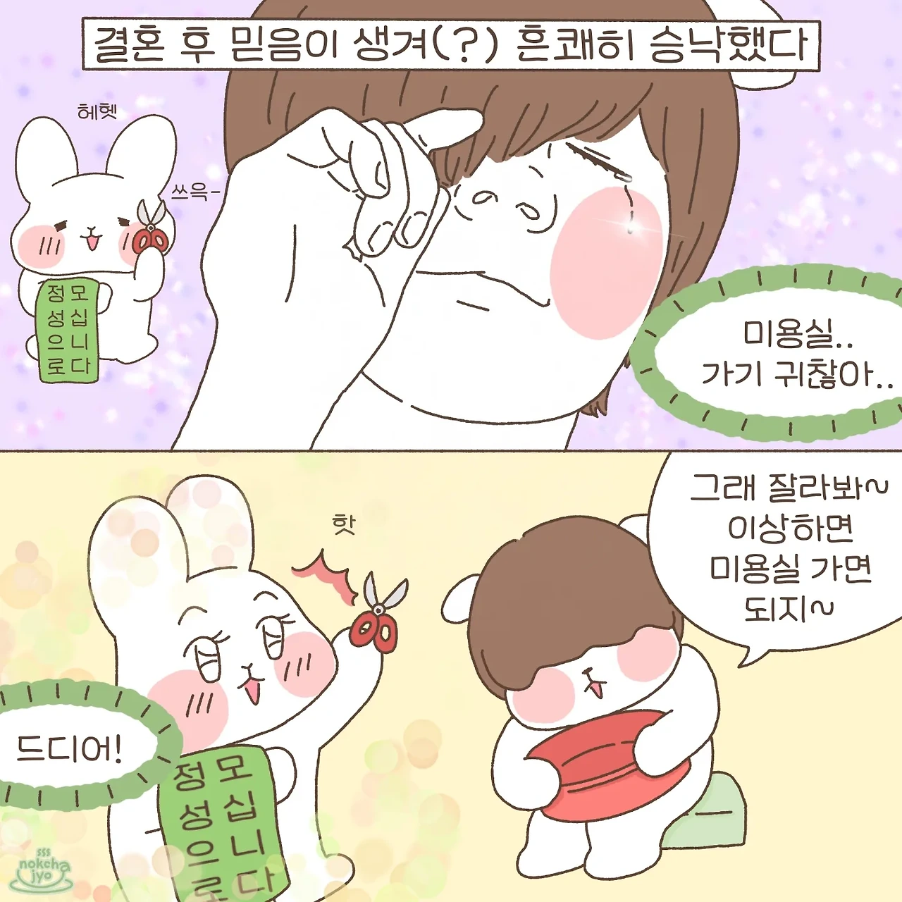 결혼 전에는 머리는 허용해주지 않던 남편이 결혼 후 흔쾌히 잘라봐~!라고 해서 신났었는데..