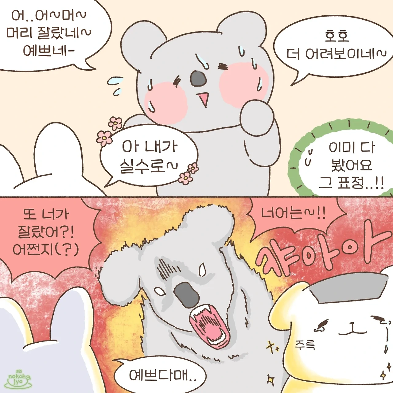 분명 머리 예쁘다고 했던 엄마는 계속해서 제가 머리를 잘못 잘랐다는 어필을 하셨습니다..