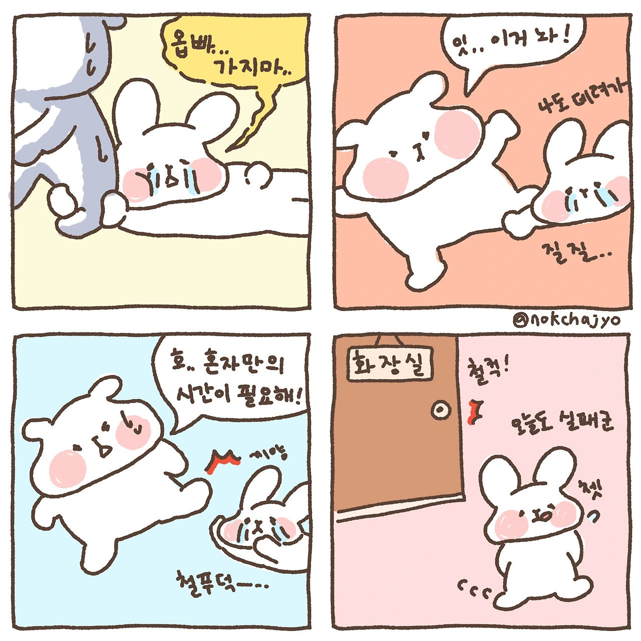 하루의 따뜻함 녹차죠입니다 우당탕탕 신혼 일상 만화에요! 귀여운 토끼와 미니메추리의 반려 집사랍니다~ 주 2회 이상 연재합니다