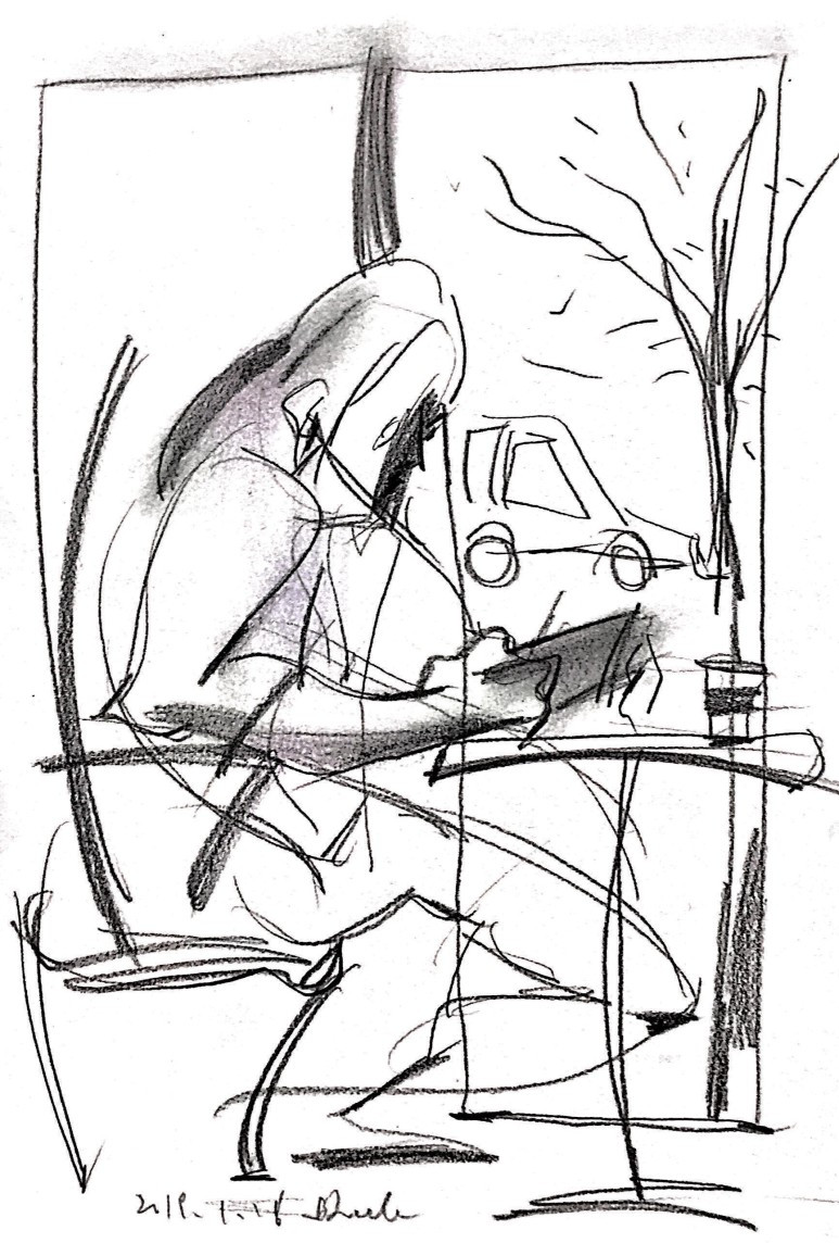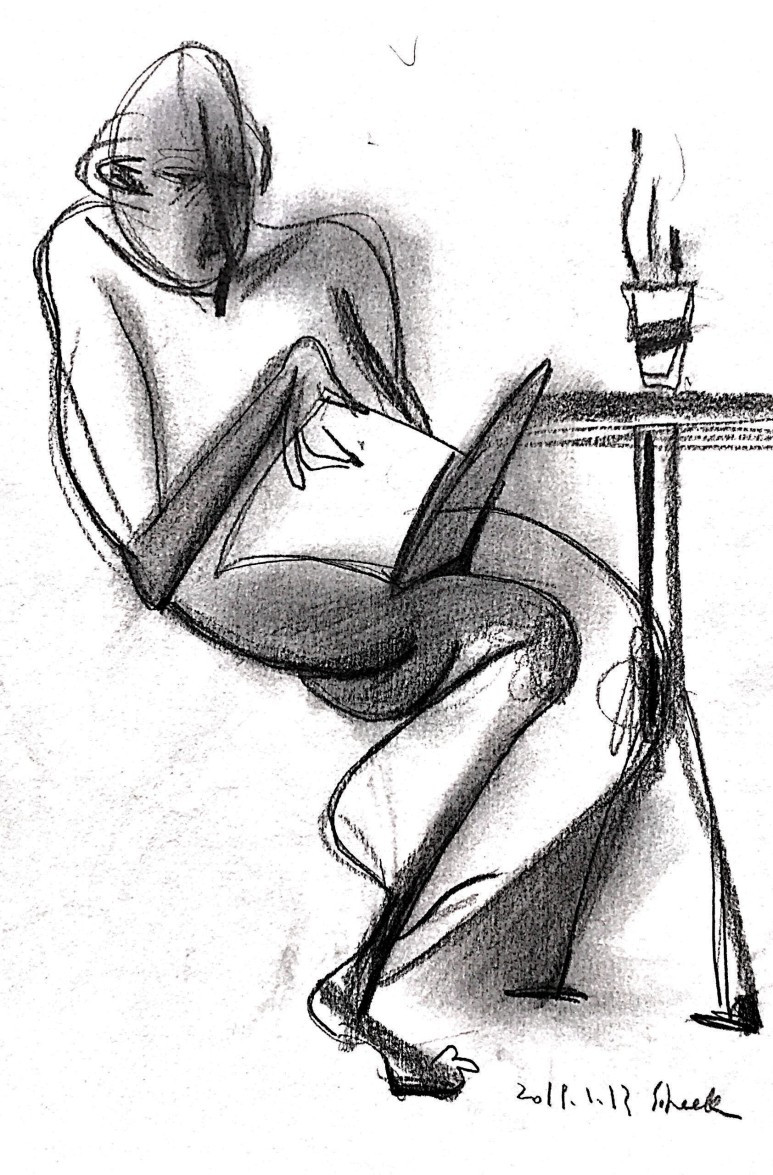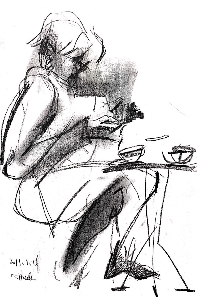 카페에 앉아 사람들을 관찰하고 그림 그리기를 반복했다.
