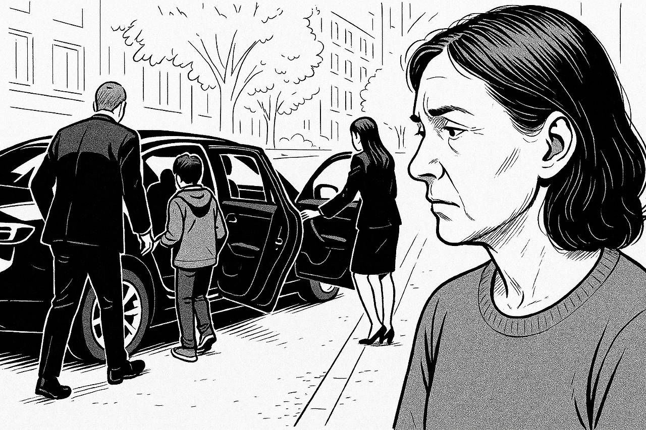 검은 세단 한 대가 미끄러지듯 정문 바로 앞에 멈춰 섰다.타이어가 얼음 위에서 끼이익 소리를 질렀다.