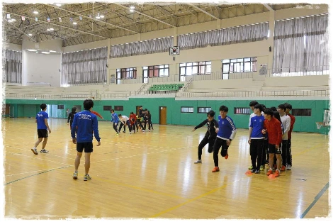이번 두번째 만남은 늦은 시작과 단체게임 지연으로 종목별 수업을 10분 늦게 마쳤습니다. 시간이 언제 지나갔는지 모르게 모두들 집중해서 수업을 합니다. 종료를 알리는 호각소리에 아쉬운 표정으로 마무리 운동을 위해 체육관 중간으로 모입니다.