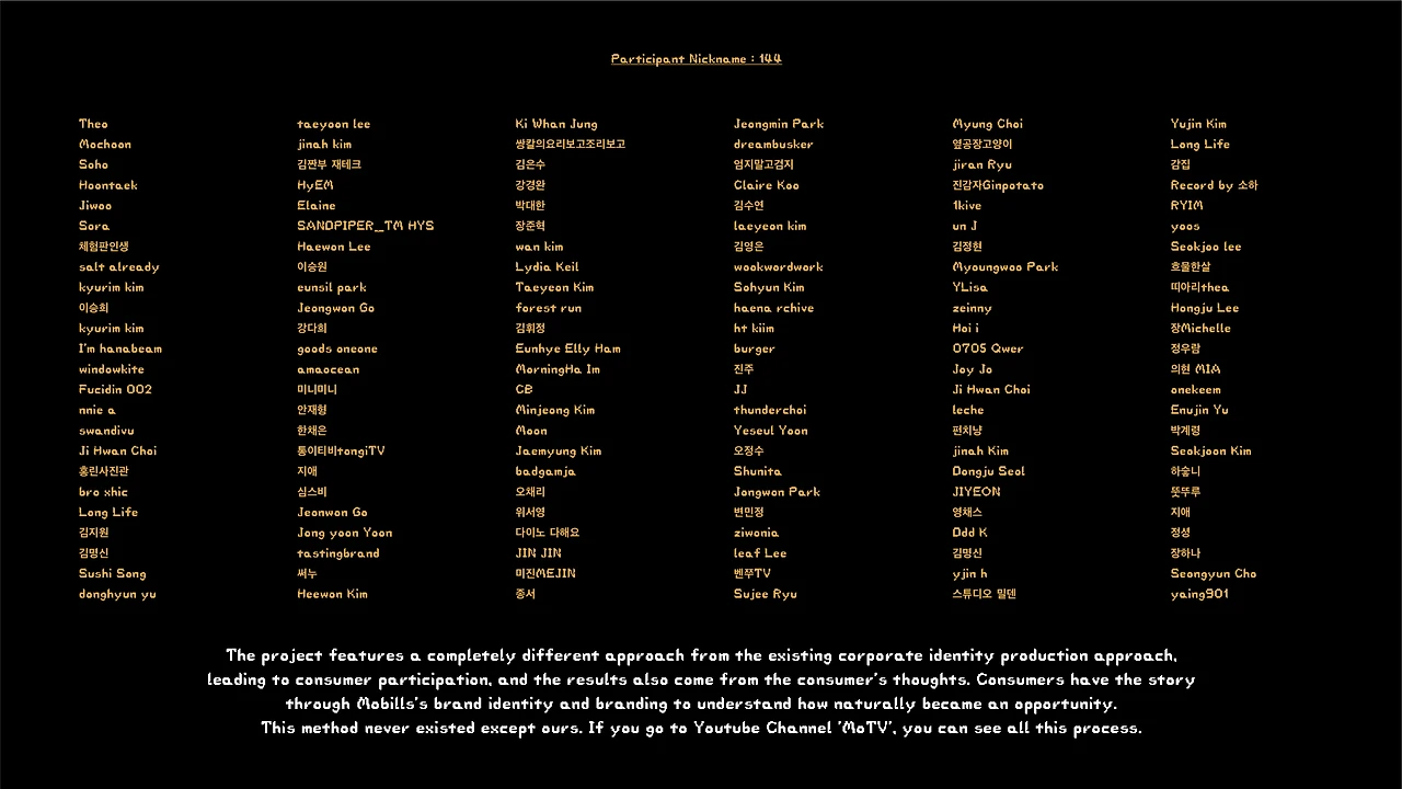 (프로젝트 참여자 총 144명의 닉네임 : 서브젝트와 아이디어를 던져주신 모쨍이분들과 모빌스 구성원들)