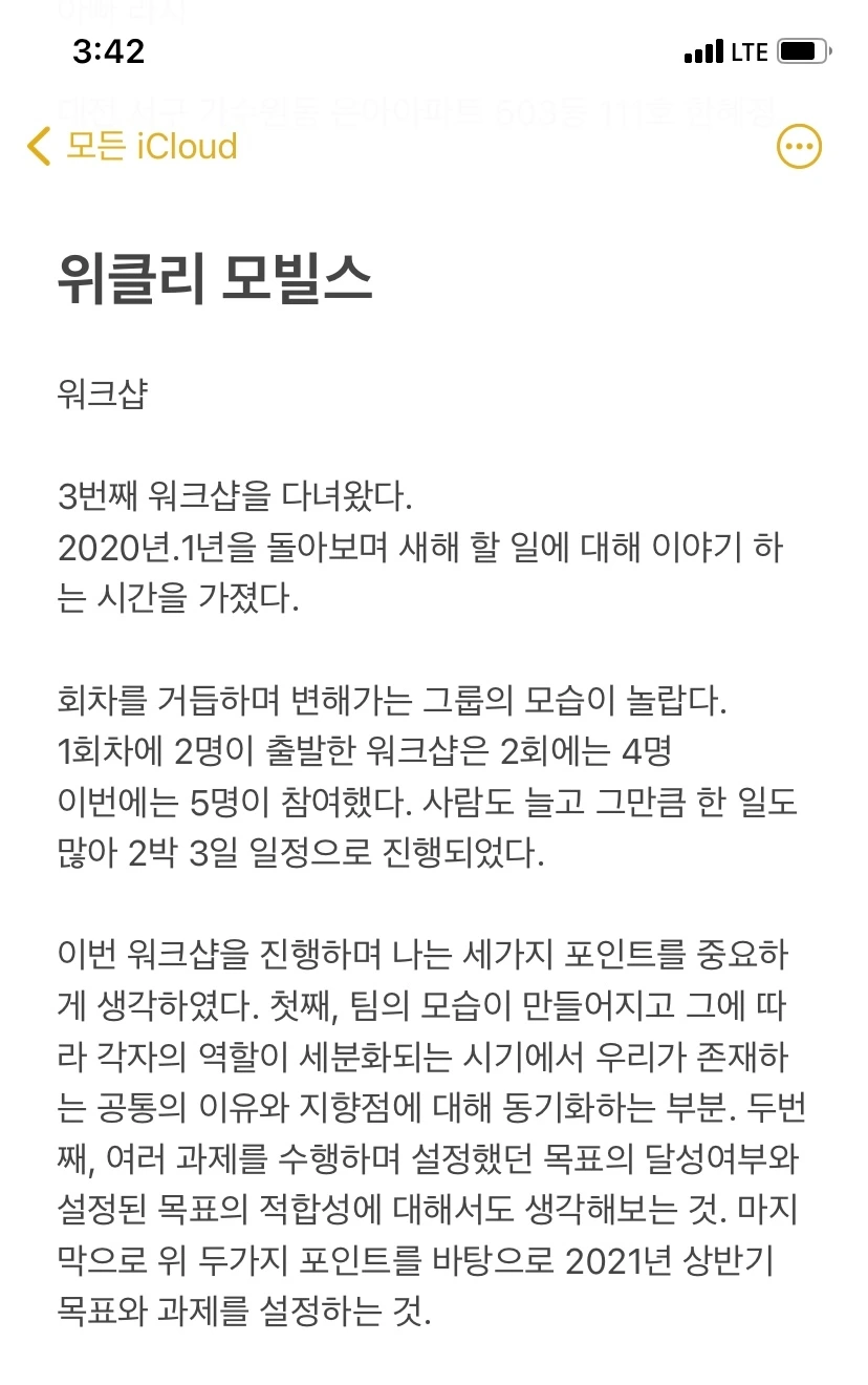 * 사진 설명. 워크샵 후 위클리 모빌스 작성하다가 멈춘 메모