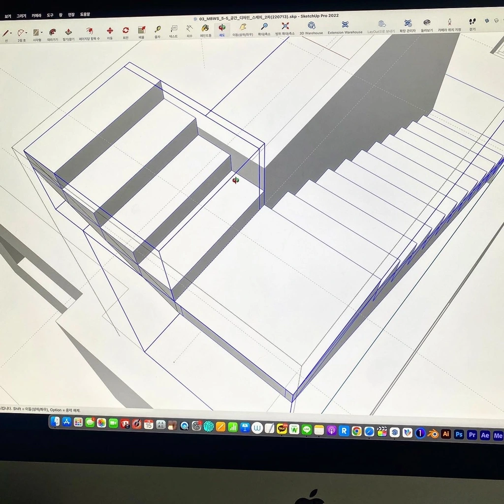 대오한테 속성으로 배운 스케치업을 가지고 우리 공간 구조를 짜보고 있다. 작년부터 배워야지 배워야지 했었는데 역시 무언가 미션이 있어야 하게 되는 것 같다ㅋㅋ 2D로 그렸을때는 다 될 것만 같았던 공간이었는데 막상 3D로 올려보니 생각보다 공간이 엄청 협소했다. 일차적으로는 건폐율이며 용적율이며 규제에 맞춰야 하는 부분도 생기다보니 생각보다 엄청 제한적이여서 어려움을 느꼈고, 극장도 법적으로 인정받기위한 최소한의 규격이 있어서 스케치업을 올리면 올릴 수록 어려움이 자꾸만 생겨났다.ㅜㅜ 그리고 특히 계단! 계단에 위치에 따라서 공간이 넓어지기도 하고 좁아지기도 하고 어떻게 배치하는지에 따라서 공간이 사냐 죽냐라서 너무나 어려웠다. 일단은 멤버들끼리 합의하여 일차적으로 해결을 했지만...!