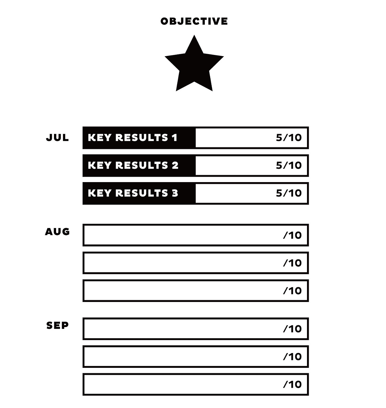구글의 OKR에서 강조하는 것은 여러 가지가 있지만 생산성의 측면에서 가장 핵심은 '집중'이다. 분기별로 3개월씩 쪼개서 생각했을 때 이번 분기에 가장 중요한 것 한 가지로 목표(Objective)를 잡고 그에 맞춰 가시적인 지표(Key Results) 3가지를 계획하고 실행한다. 이때 중요한 것은 자신감 점수를 10점 만점에 5점으로 맞추는 것이다. 해낼 가능성이 50%인 지표로 설정한다. 소호사에 적용해 집중할 방향을 찾아보면서 복잡한 머릿속이 단순해졌다. 매월 목표를 향해 얼마큼의 지표를 달성했는지 시각적으로 확인하며 2019년 3분기를 보내볼 계획이다.