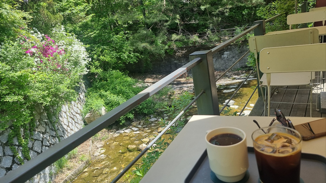 다시 차를 타고 우이동 계곡길을 가다가 카페 한 곳을 찾았다. 컵받침으로 내놓은 실리콘에 북한산으로 짐작할만한 선이 그려져 있어 미소지었다.
