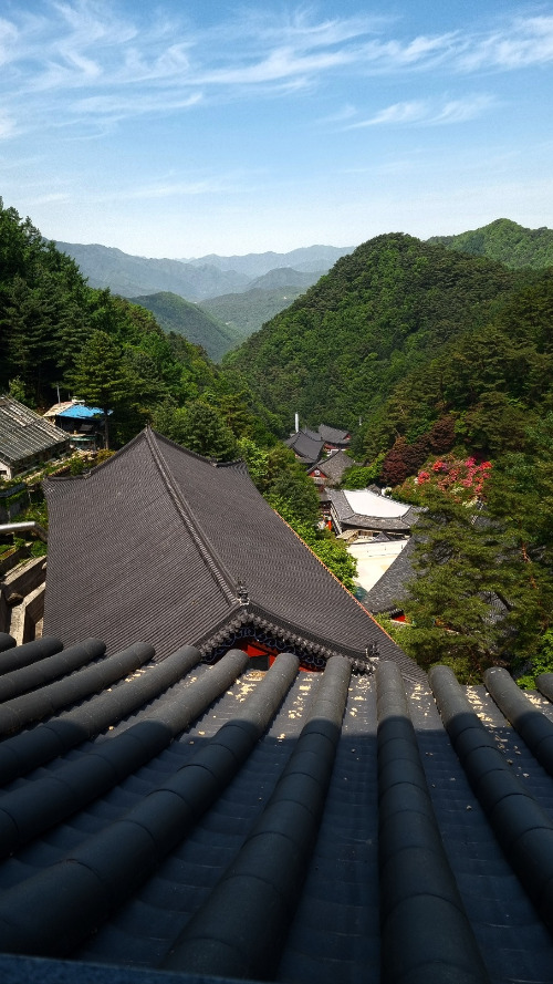 대조사전 마당에서 뒤를 돌아보면 이런 풍경을 만날 수 있다. 대조사전까지 가는 대부분의 사람들이 남기는 사진으로, 나도 카메라를 열 수 밖에 없었다. 가을이 오면 저 산의 나무들이 얼마나 붉게, 아름답게 물들 지 상상이 안갈 정도였다.