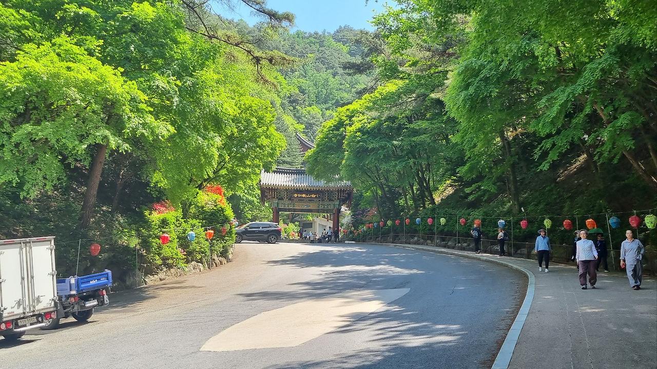 20분 이상을 걸어올라가면 구인사 입구가 나온다