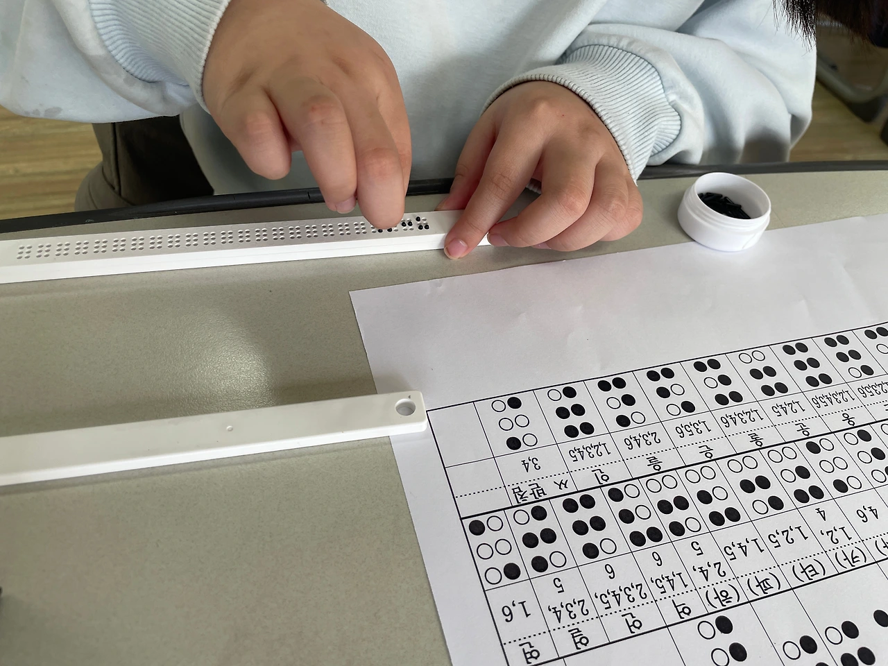 점자가 하고 싶어서 집에 가는 것도 미루고 온 봄이와 나는 마주 앉아 침묵 가운데 열심히 점자를 찍었다.