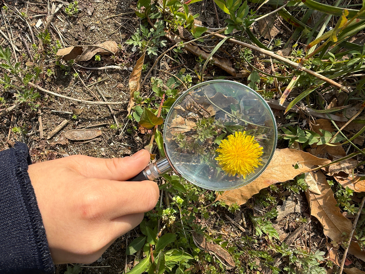 돋보기로 들꽃을 관찰하고 꽃을 심기로 했다.