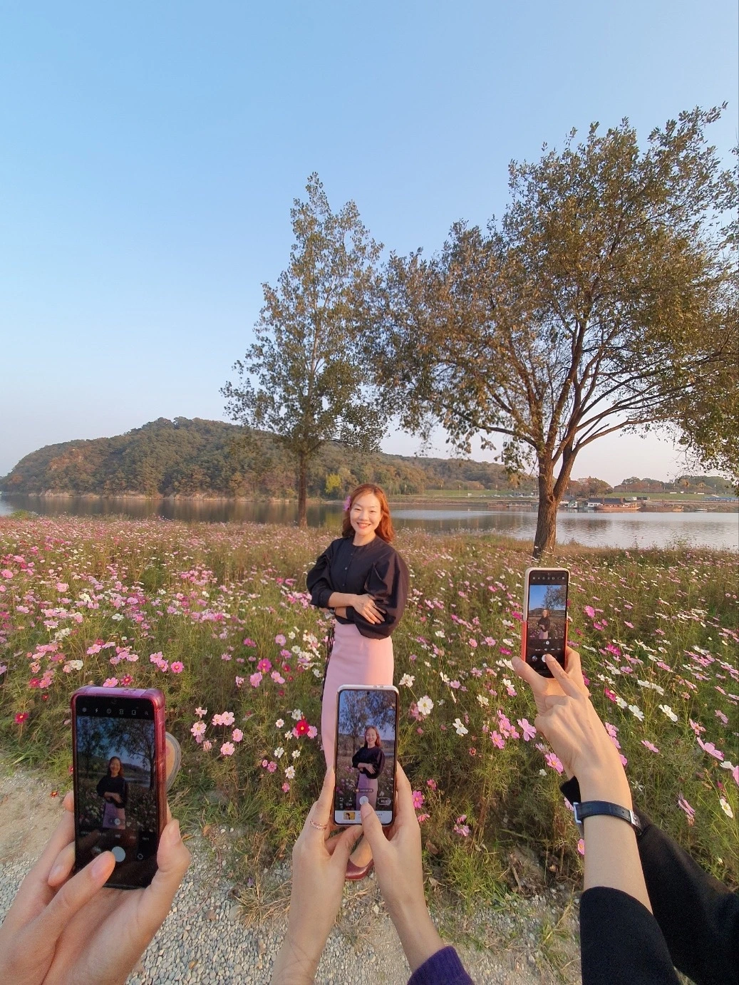 오후에 교장선생님과 동료들과 간 코스모스 꽃 밭의 꽃들은