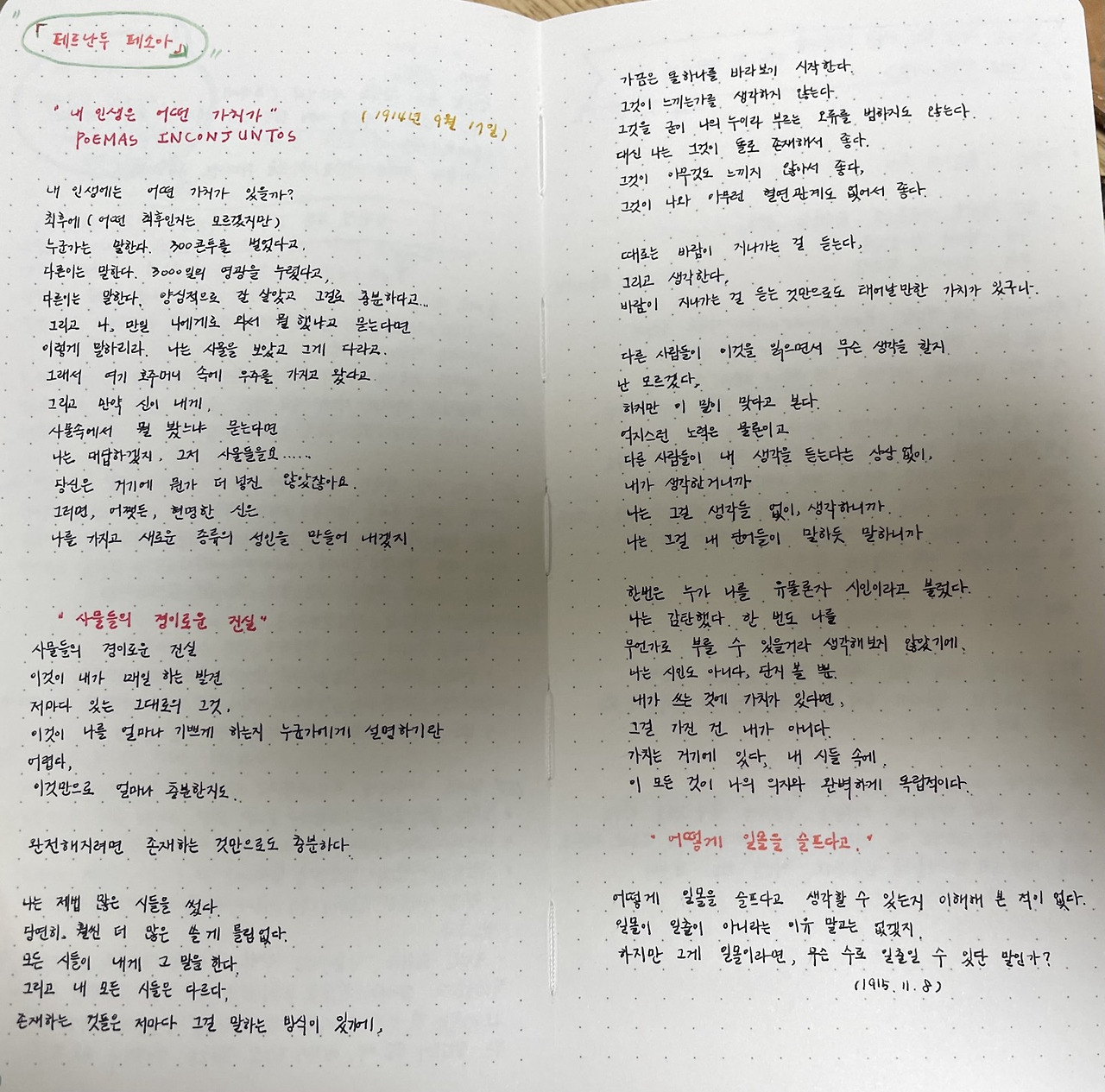 우선 페르난두 페소아의 작품을 읽고 있다.