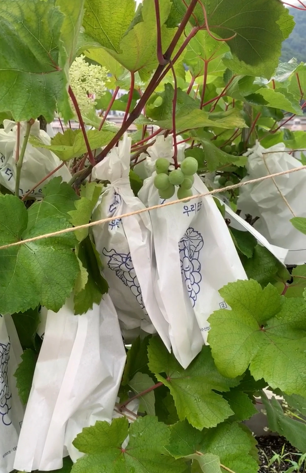 그다음 해에도 포도는 알아서 공부 잘 하는 모범생처럼 잘 열렸고, 더 풍성해졌다. 포도가 단향을 풍기며 익어갈 무렵에 그 향을 맡고 달려드는 새들만 조심하면 별 문제는 없었다. 일일이 과일 싸는 봉투로 싸주면 새들의 공격에서 벗어날 수 있는데, 과연 저 답답한 봉투 안에서 다 썩어 문드러지는 거 아냐 싶지만, 기특하게 별 탈 없이 잘 익는다. 그렇게 한참을 포도나무가 아니라 봉투 나무로 버티고 나면 포도를 맛볼 수 있다. 포도를 수확한 나도, 포도나무도 한 해의 목표를 이룬 셈이다. 추워지기 전에 가지를 과감히 잘 잘라내고 나면, 포도나무는 긴 겨울잠에 들어간다. 가끔은 죽었나 싶을 정도 말라비틀어져 있는 모습에 설마 하는 생각이 들다가도 다시 봄이 찾아오면 언제 그랬냐는 듯이 포도나무에 새순이 돋는다. 가지들은 점점 뻗어나가고 깻잎 모양의 잎들로 옷을 갈아입는다. 그리고 때가 되면 포도가 열린다.