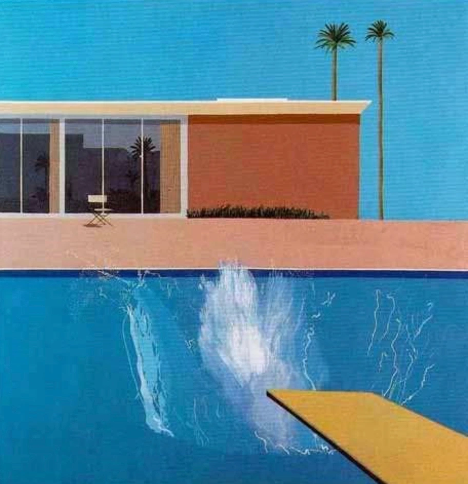 영국에서 미국 캘리포니아로 이주한 호크니는 집집마다 수영장이 있는 모습에 충격 아닌 충격을 받아 수영장 시리즈를 그렸다고 한다. 우중충한 영국의 기후와 달리 청명한 캘리포니아의 날씨, 그리고 그 날씨에 꼭 필요한 수영장. 어쩌면 그도 그런 집에서 살고 싶다는 마음으로 이런 그림을 그리지 않았을까. 우리 집에 있는 <더 큰 첨벙> 포스터를 찬찬히 보니 호크니의 숨겨진 염원이 보이는 것 같다.