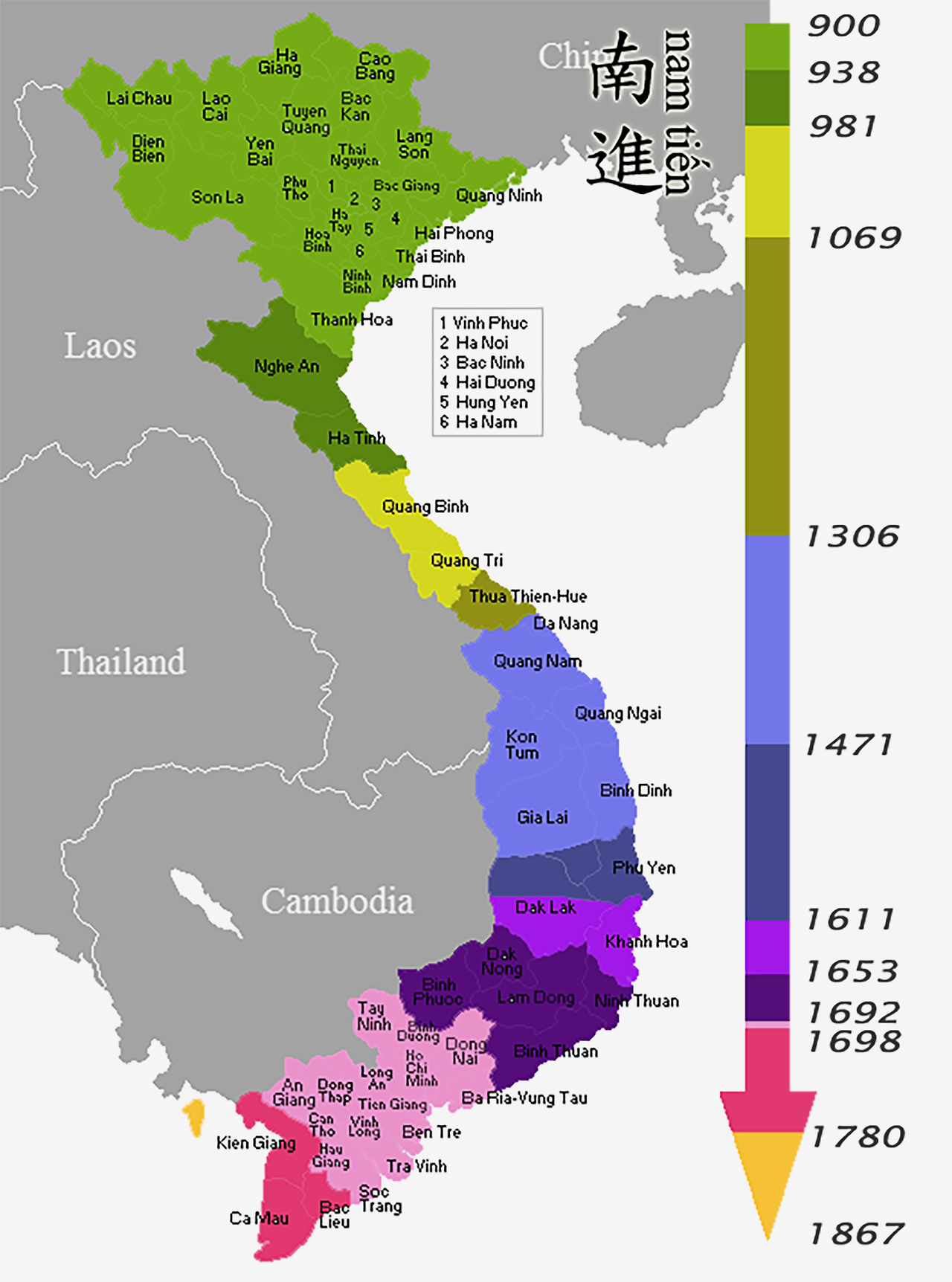 10세기 말 중국에서 독립한 북베트남 여러 왕조는 11-18세기 오랜 기간 지속적으로 남쪽으로 세력을 넓히는 남진(Nam tiến/ 南進) 정책을 펼친다. 독립국가로서 세력을 넓히고 싶었으나, 북쪽에는 중국, 서쪽에는 거대한 산맥과 밀림, 동쪽에는 바다가 있어서 뻗어 나갈 수 있는 곳은 남쪽 뿐이었다.