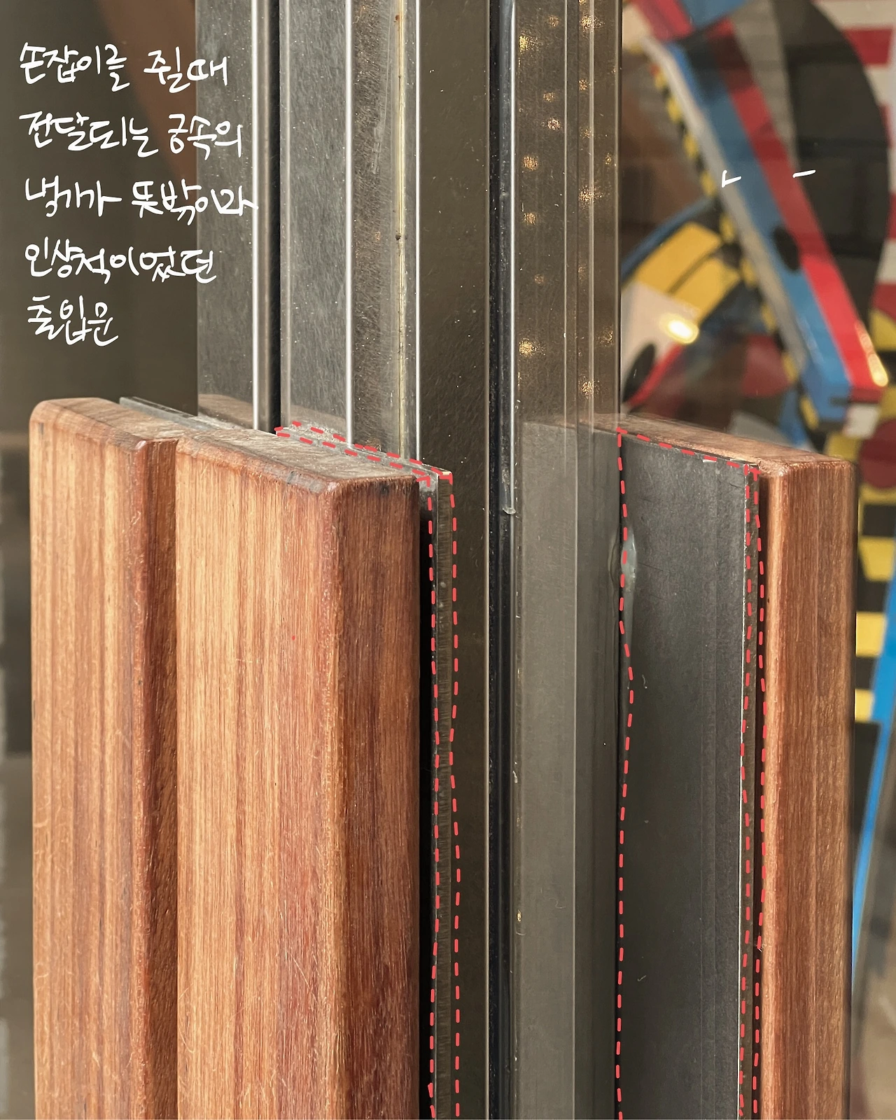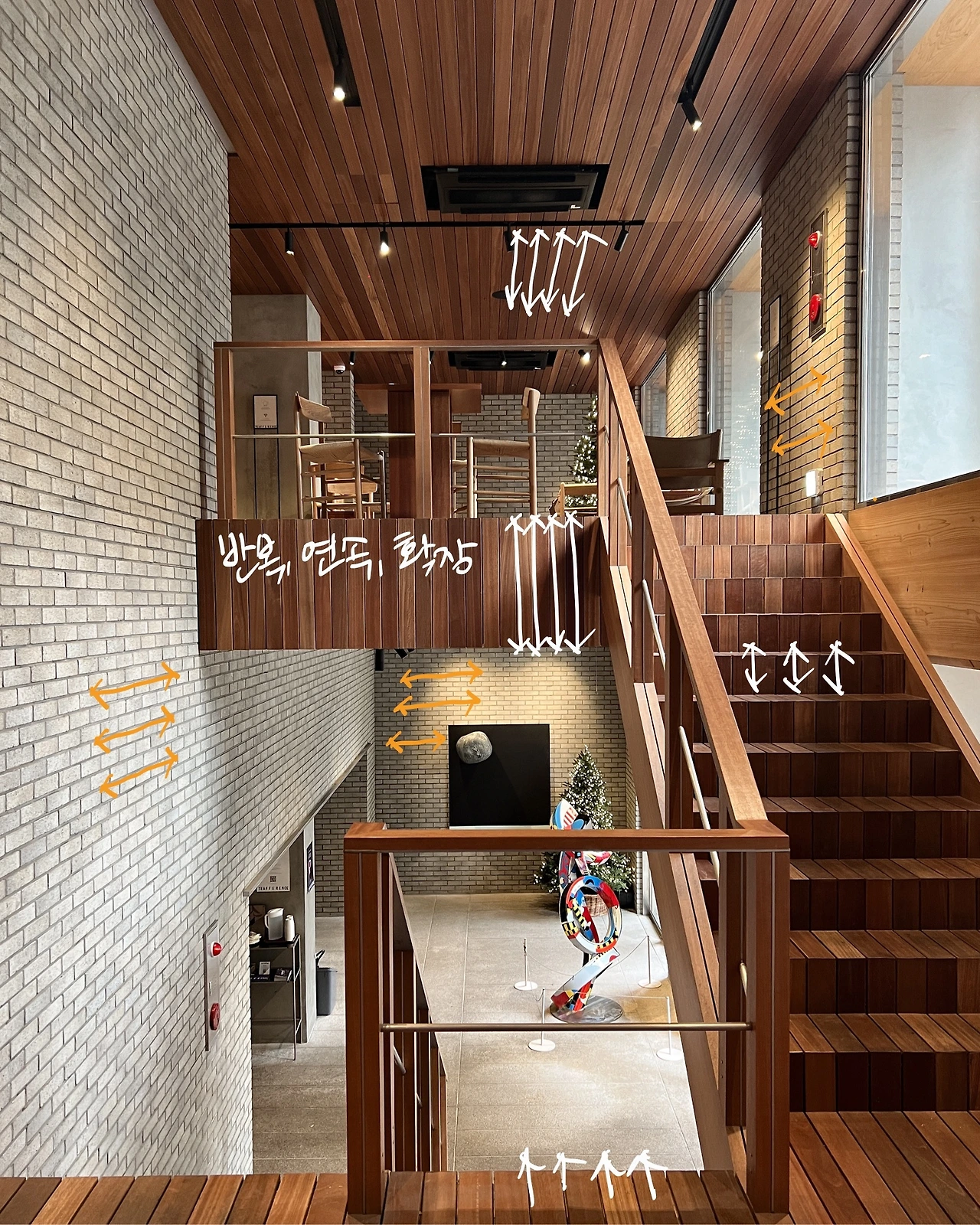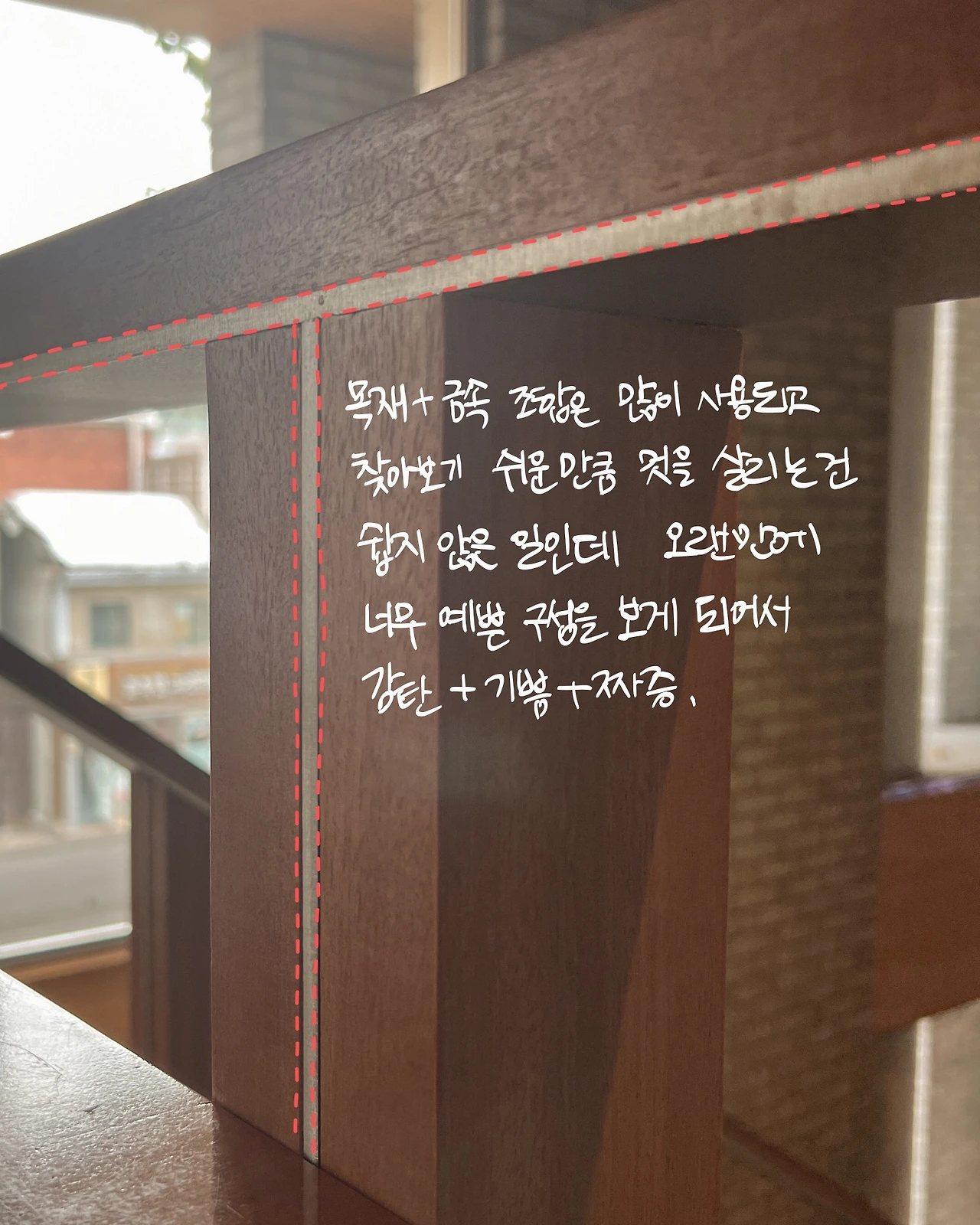 그리고 무엇보다 금속. 잘못 쓴 금속재에서는 왠지 까끌거려 칠판 긁는 소리가 날 것 같지만 잘 쓴 금속은 자꾸만 만져보게 된다. (몇 t일까, 어디에 고정했을까, 어떻게 제작했을까…)