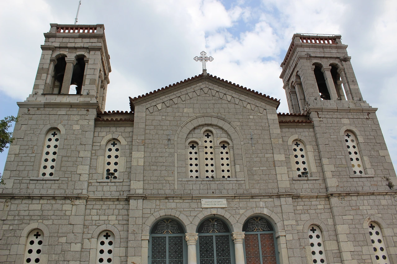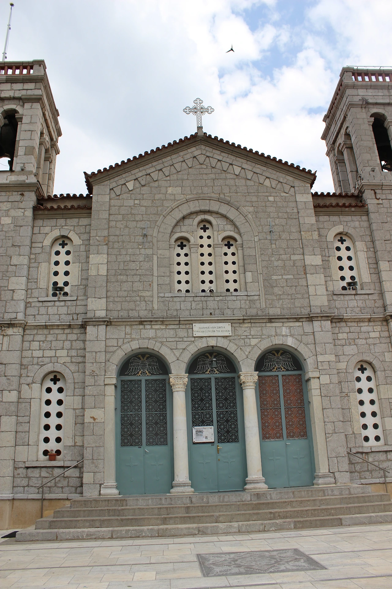 카메라 한 장에 다 담을 수 없을 만큼 큰 규모의 아라호바 그리스 정교 교회. 정면.