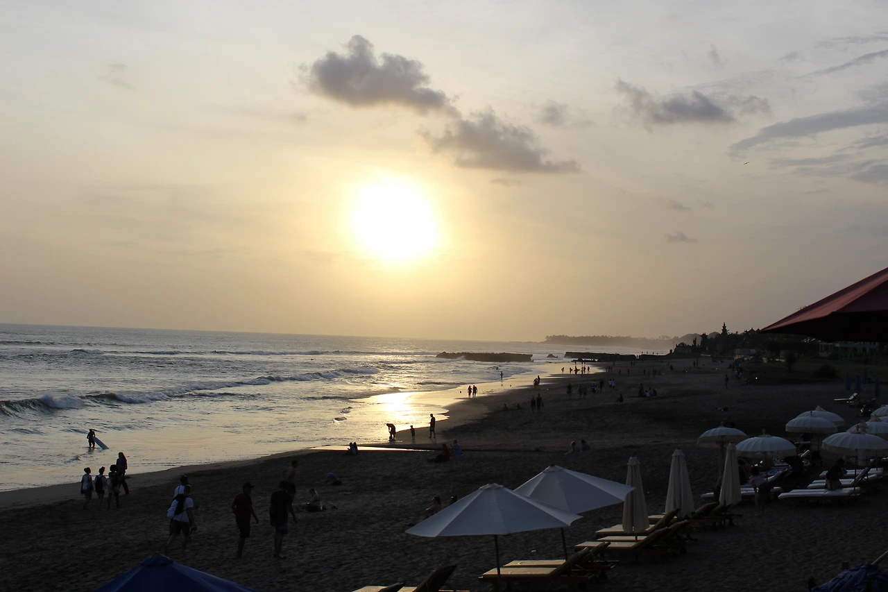 셰프와 필자는 그리스에서 자라고, 그리스에서 살았던 경험 때문에 '비치'하면 무조건 에메랄드 블루 빛을 떠올린다. 그러다 보니 발리에도 '그런 해변이 있었으면' 하고 기대를 하였다. 발리에 오기 전 많은 블로그에서 이야기를 그렇게 이야기를 해주었건만 흙색 물빛의 바닷물을 보고 있자니 아주 조금 아쉬운 마음이 들었다. 하지만 발리에는 에메랄드 블루 빛 바다보다 더 좋은 무언가가 있기 때문에 '수영은 수영장에서 하면 되지'라는 마음으로 바닷물에 발만 담궈 본다. (그날 밤 숙소 수영장에서 달빛을 받으며 단 둘이 수영을 즐겼다.)