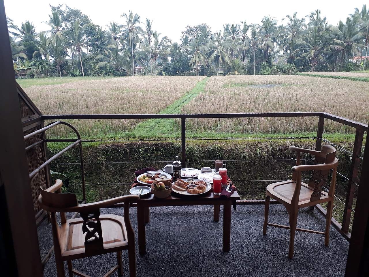 숙박 요금에 미리 조식을 포함시켰다. 셰프와 필자에게 하루 중 가장 중요한 식사가 바로 조식이기에 여행을 갈 때 대부분 숙박요금에 조식을 포함한다. (KTS Balinese Villa를 예약할 때도 분명 조식을 포함시켰는데 어쩐 일인지 오류가 생겨 조식을 숙소에서 따로 결제해야 했다.) Junjunan Hotel의 조식은 하루 전날 선택해서 리셉션에 알려줘야 한다. 호텔 식당에서 먹거나 룸서비스를 시킬 수도 있다. 우리는 논 뷰를 보며 식사를 하고 싶었기 때문에 이틀 동안 아침 8시에 룸서비스를 요청했다.