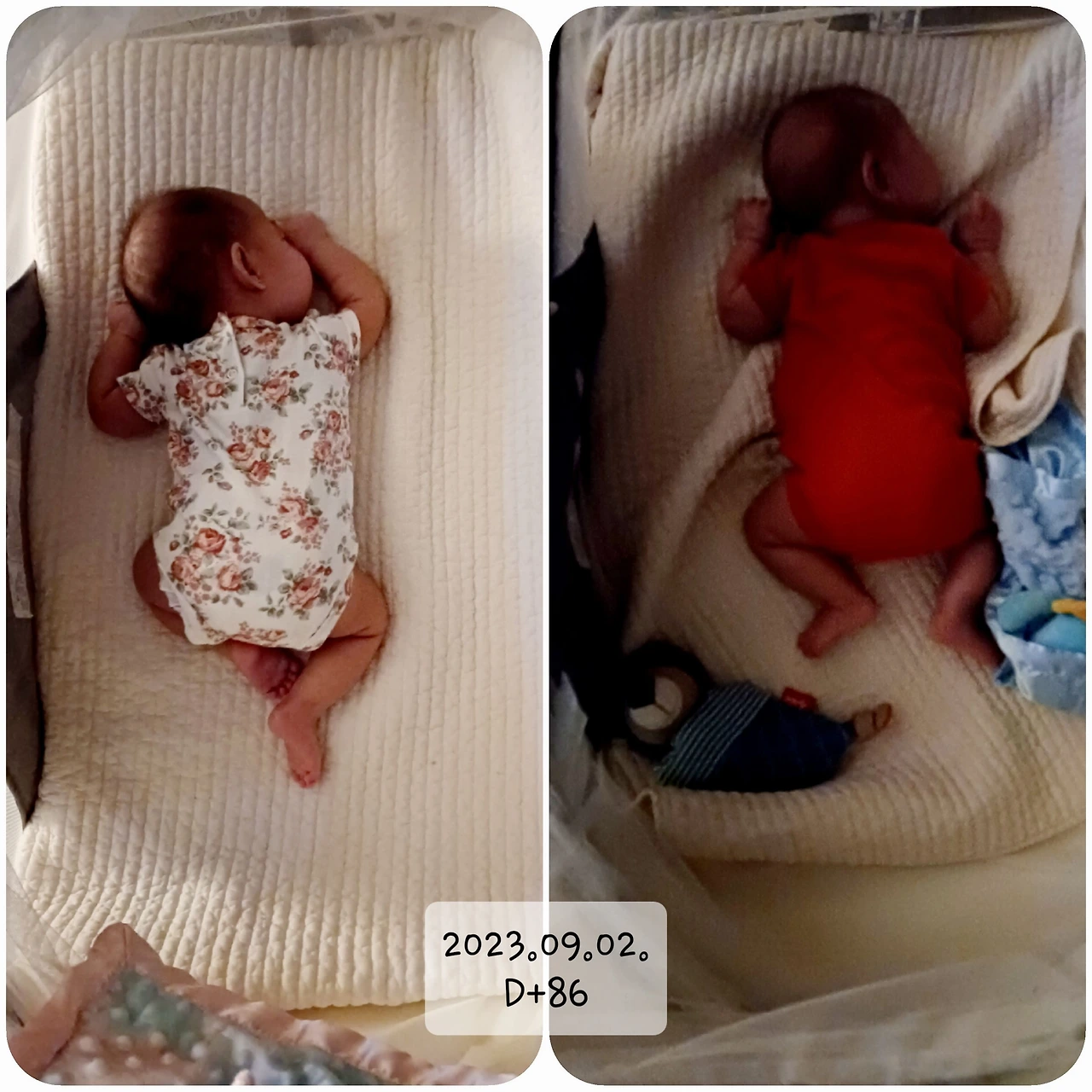 아마 70일째쯤 되는 날이었을 것이다. 남매둥이를 매일 저녁 7시에서 8시 사이에 가볍게 목욕을 시키고, 오일을 발라주고, 새 옷으로 갈아입힌 후 마지막 수유를 했다. 불을 끄고 어둡게 해 두니 수유를 하면서 자연스럽게 잠에 들었다. 하트의 경우에는 5시간~7시간 통잠을 자게 되었다. 바리는 아직 3시간마다 깨서 120~140ml 분유를 먹고 다시 잠든다. 아침 수유는 7시가 넘어서 시작된다. 그렇게 남매둥이와 나의 하루가 시작되는 것이다. 하트가 통잠을 자고 바리도 3시간 이상 자게 되어 나에게도 저녁시간이 생겼다. 이렇게 빨리 여유로운 시간이 찾아올 줄은 몰랐다.