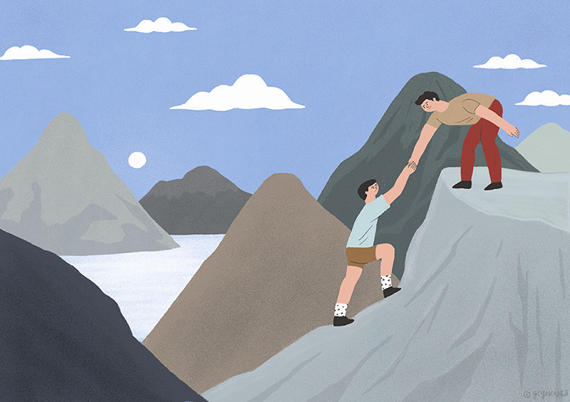 우리는 보통 제도로 이루어진 삶을 꾸리도록 교육받으며 성장한다. 그래서 독립적인 힘을 기르는 데 필요한 끈질김이 부족하기도 하다. 프리랜서로 일하는 건, 제도권을 이탈한 경제 생활로 돈을 벌고 제도권에 길들여진 사회에서 돈을 쓰는 어려운 일이다. 자칫 외롭고 불안한 요소가 많은 것도 사실이다. 코 작가는 어려움이 찾아올 때마다 견디는 지혜를 긍정적인 생각으로부터 얻었다고 했다. 밝은 미래를 상상하기도 하고 일러스트레이터로 활동하며 받은 칭찬과 격려들을 떠올리며 힘을 얻는다.