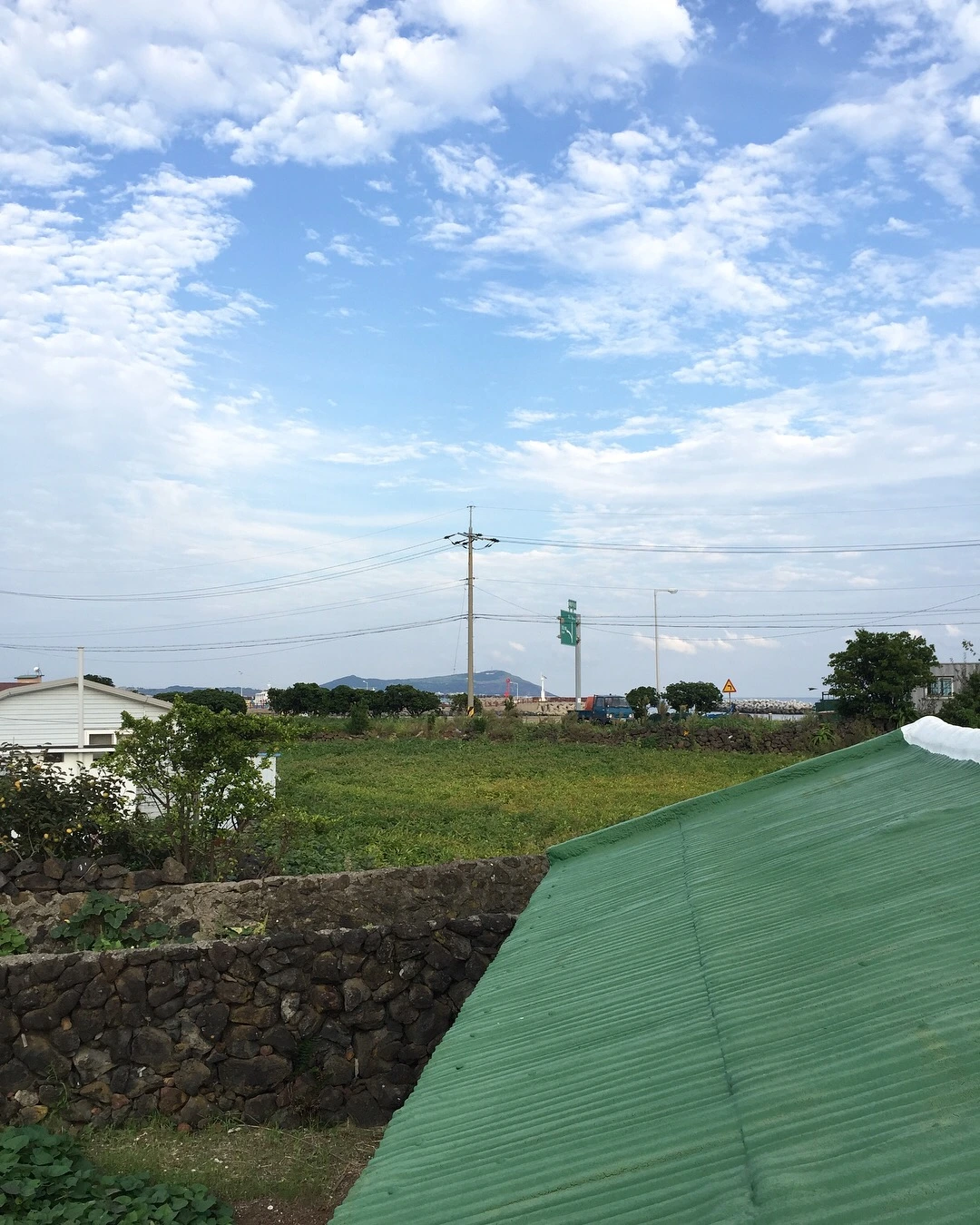 내 방 창문을 열면 알록달록 지붕을 얹은 제주 집들과 얼기설기 쌓아놓은 듯 하지만 견고한 돌담들이 보이고 그 앞으로는 푸른 밭들이 펼쳐져 있다. 그 풍경이 너무도 제주답고 정겨워서 아침에 눈을 뜨면 일부러 창문을 열고 창밖 풍경을 한참동안 멍하니 내다본다. 집 옥상에 오르면 바다 건너 우도와 성산일출봉이 보이고 시야에 걸리는 높은 건물 하나 없이 시원스레 넓게 트인 하늘의 고운 일몰도 볼 수 있다.