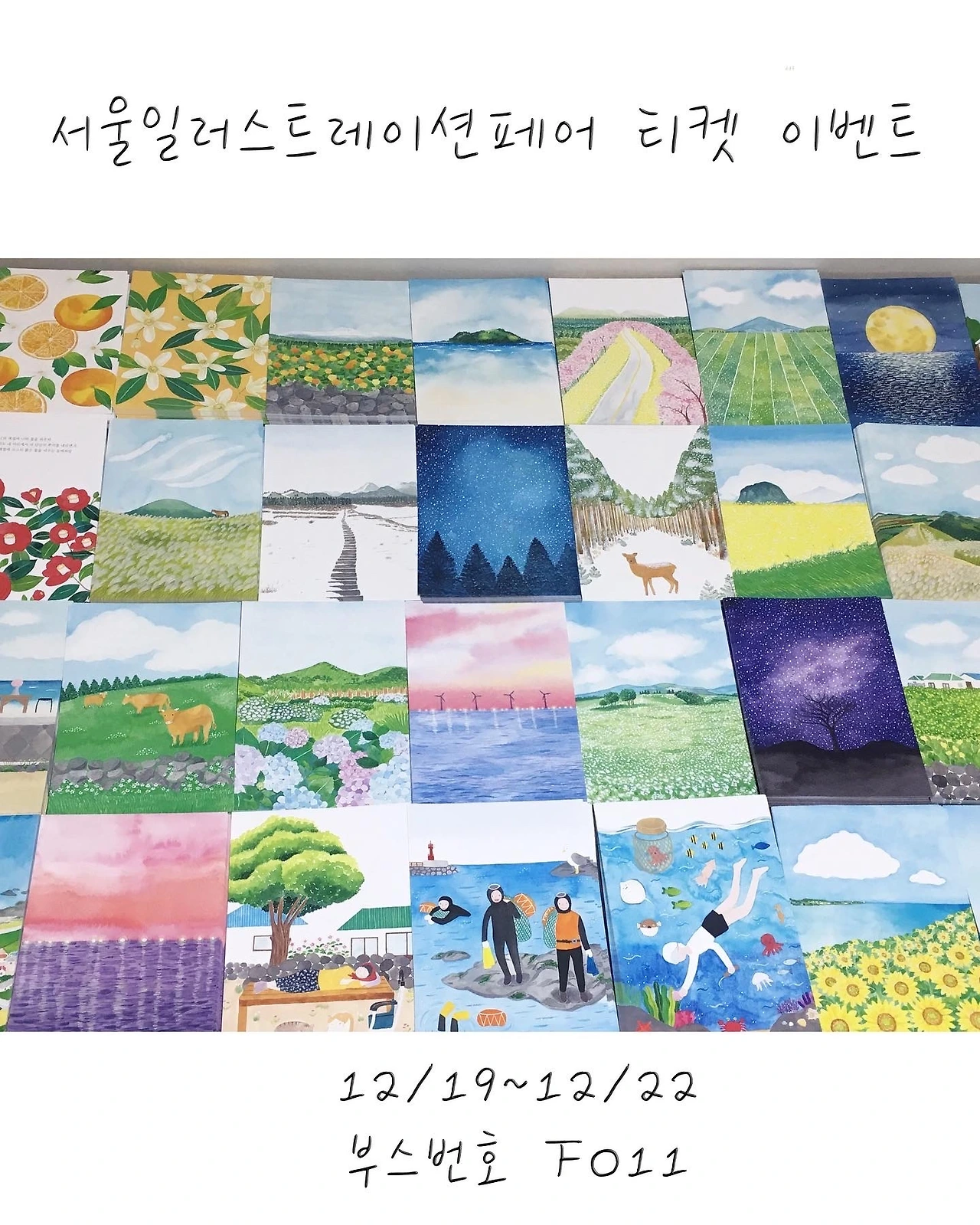작년에 이어 올해도 코엑스에서 열리는 서울일러스트레이션페어에 참가합니다. 12/19~12/22 4일간 진행되며 제 부스는 F011 입니다