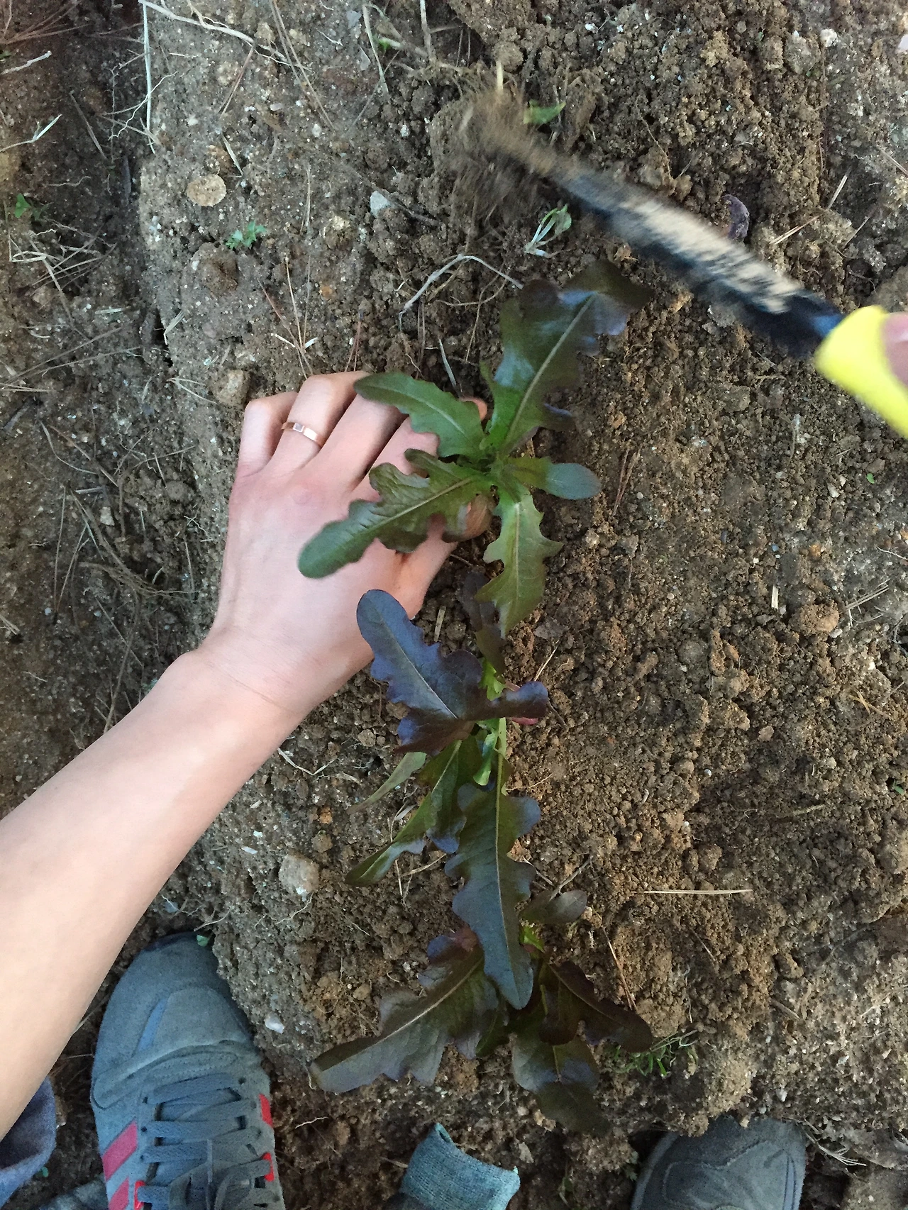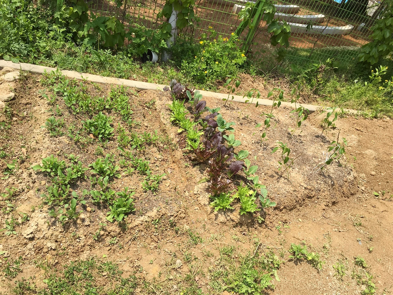 쌈 모종을 심을 때쯤 먼저 씨를 뿌렸던 루꼴라 새싹들이 올라왔고 제일 마지막으로 고추 모종을 심었다