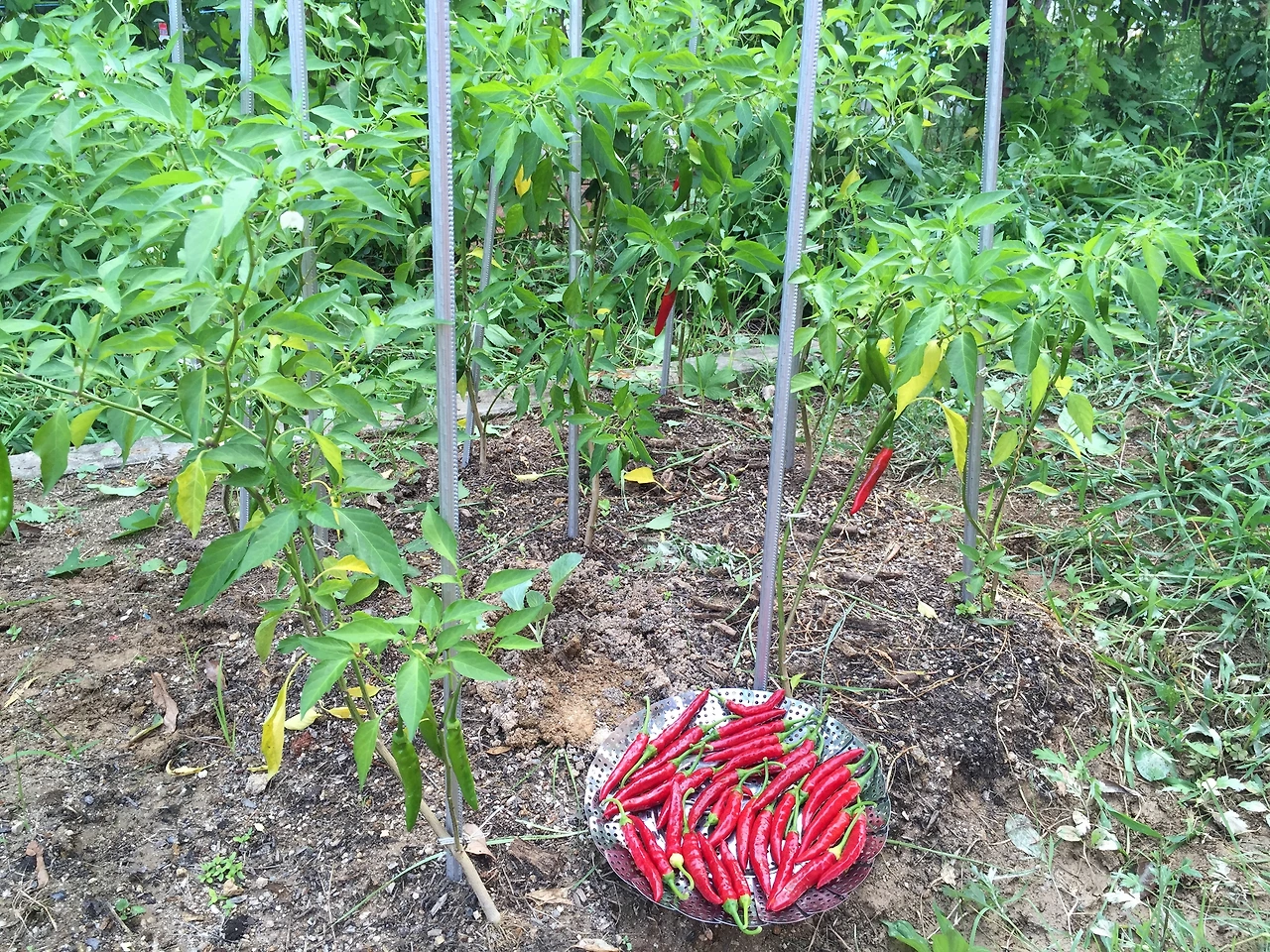 맨 왼쪽이 루꼴라 그 다음이 쌈채소 그리고 마지막은 고추. 쓰러지기 전에 쫄대를 연결해야 했다