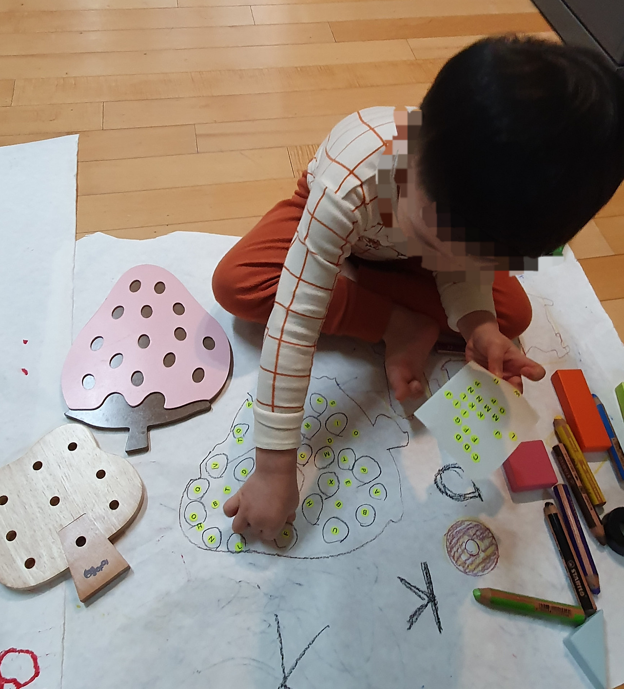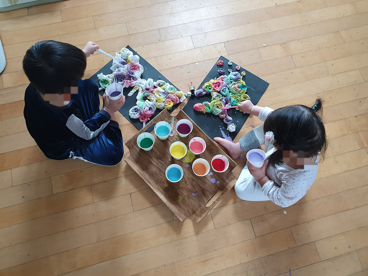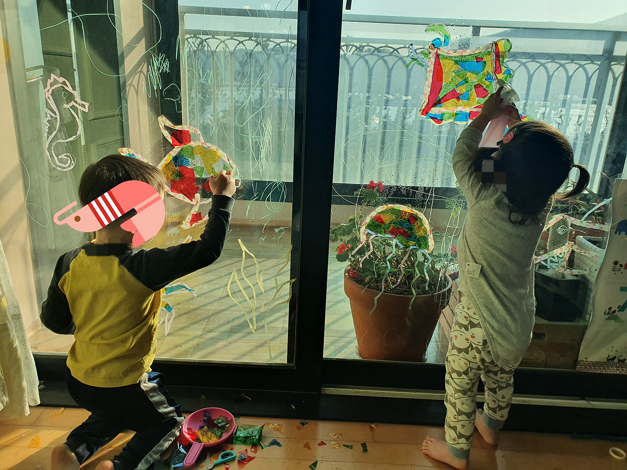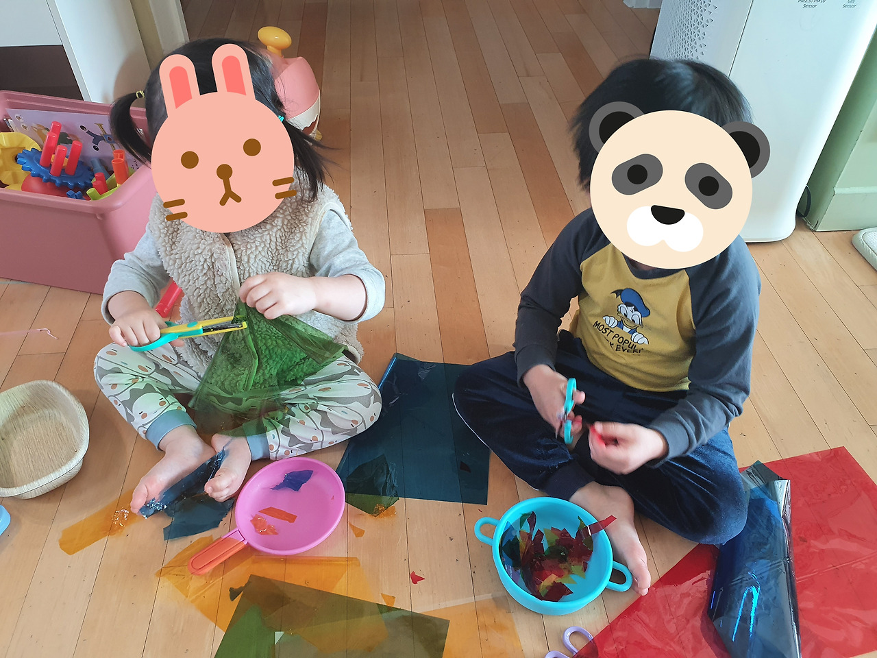 소꿉놀이를 가장한 둘째의 젓가락질 연습 /한지를 찢어 국수집도 차려보고 /수수깡 부러트리는 재미 한번 맛보면 멈출수 없다요~! 오늘은 국수 말고 뭐 없을까? 다른 질감, 다른 색의 종이에 그림 그려보기 적극추천! 아이들이 손수 만든 한지발은 인기 최고~~ 종이에도 그리고 유리에도 그리고~ 셀로판지 놀이는 어느새 작품활동으로~ 우리 작업자들 오늘 일당 두둑히 드려야겠어! 물감을 섞어 떨어트리면서 휴지가 물들어가는걸 보는게 재밌어요! / 알파벳 스티커는 붙이라고 주기만해도 자꾸 물어보기에 자연스럽게 학습효과가~ 너덜너덜 해질때까지 불어대던 쥐 레이싱 / 우리 아랫층 이웃은 태평양 바다같은 마음씨를 갖으셨어요!