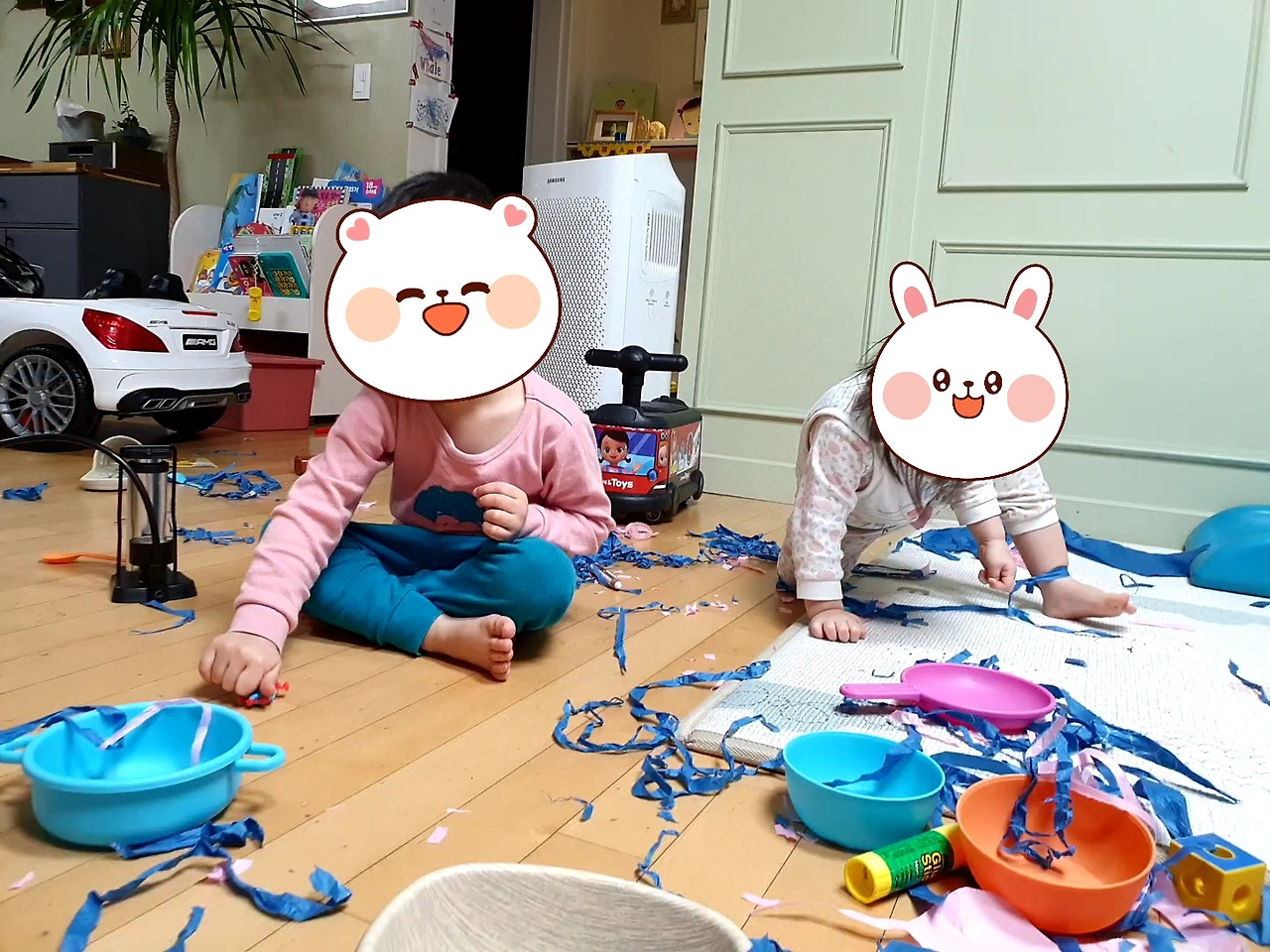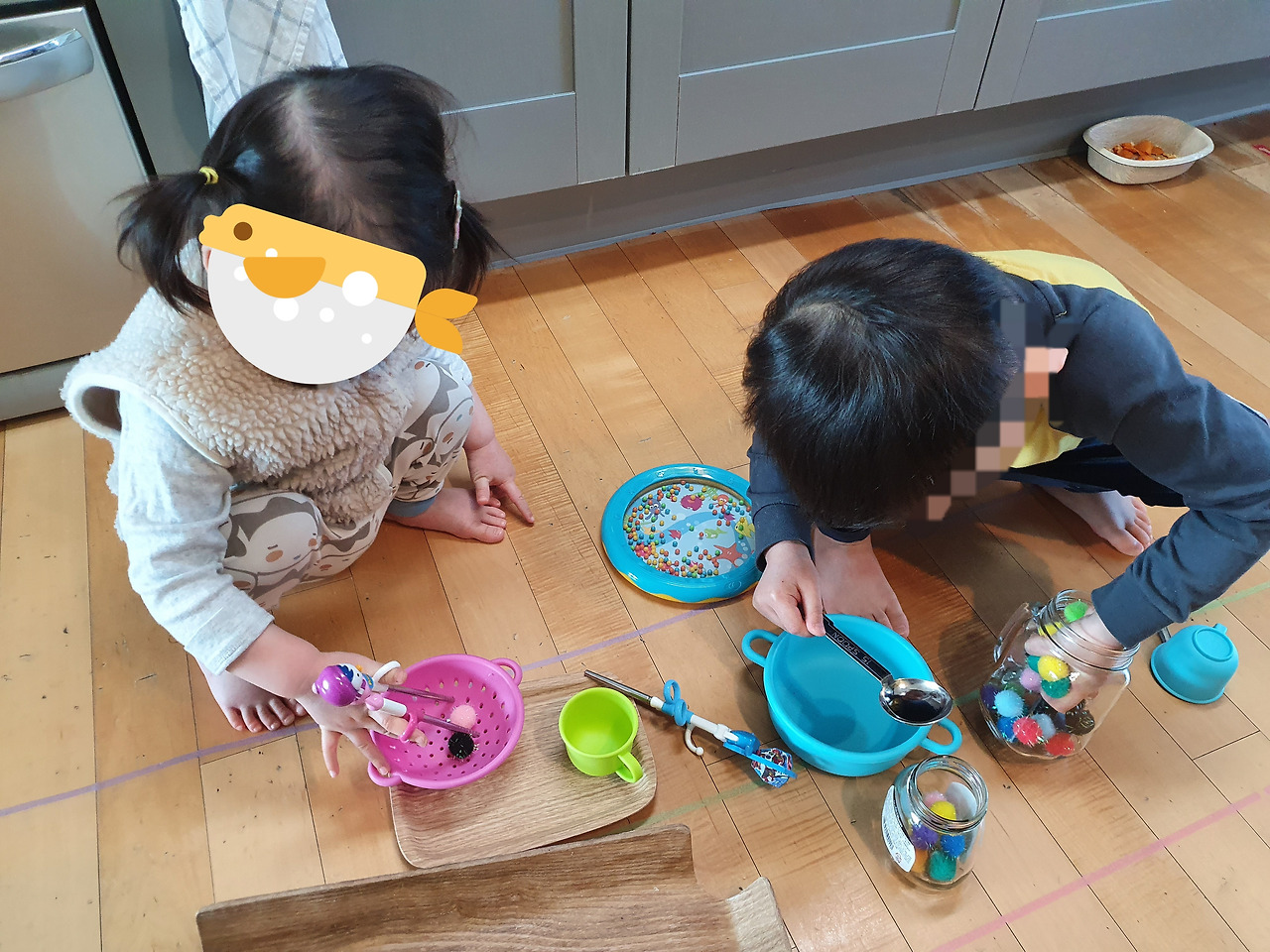 작년 같았으면 이 사태가 정말 너무 끔찍스러웠을 거 같은데 불행 중 다행인 건 두 녀석이 이제 같이 잘 논다는 거다. 첫째는 이제 졸졸 따라다니는 둘째를 귀찮아하지도 않고 오빠를 따르는 둘째를 도와주며 오빠로서의 자긍심도 느끼는 거 같다.