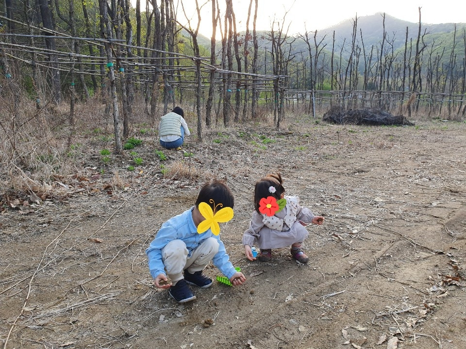 난 아이들 곁에 붙어 있느라 나물 뜯기는 하는 둥 마는 둥이었지만