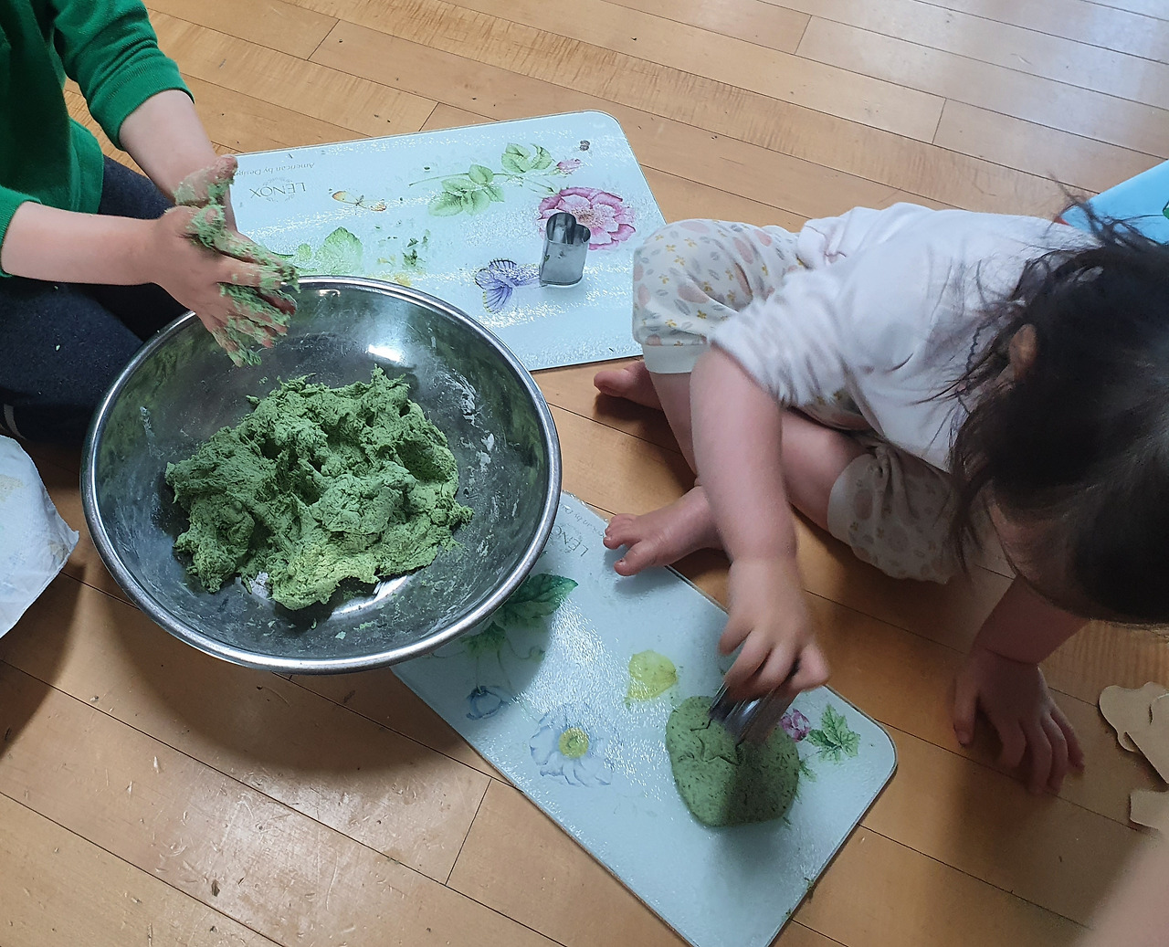 아이들이 재밌게 반죽 놀이를 해서도 좋았지만 쑥떡이 기대가 되어 더 신바람이 났다.