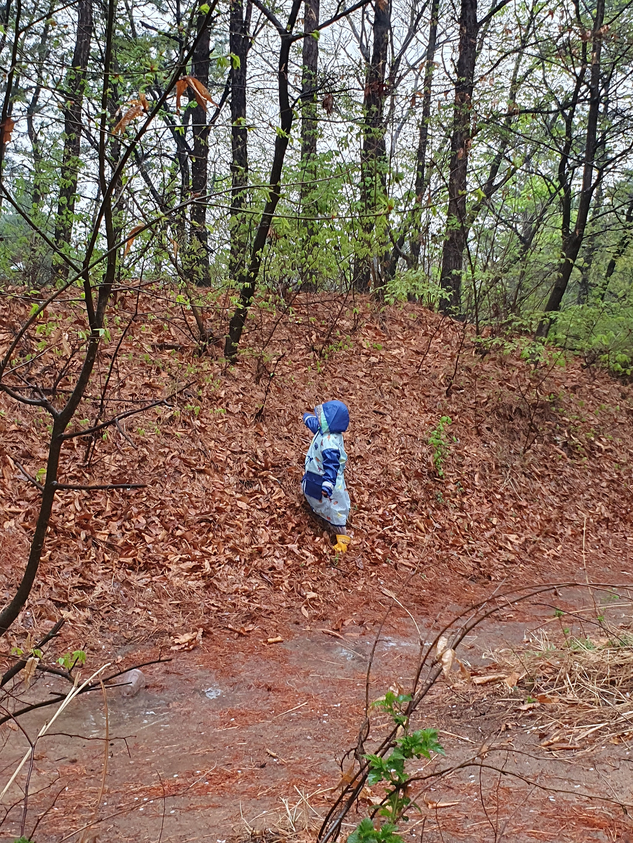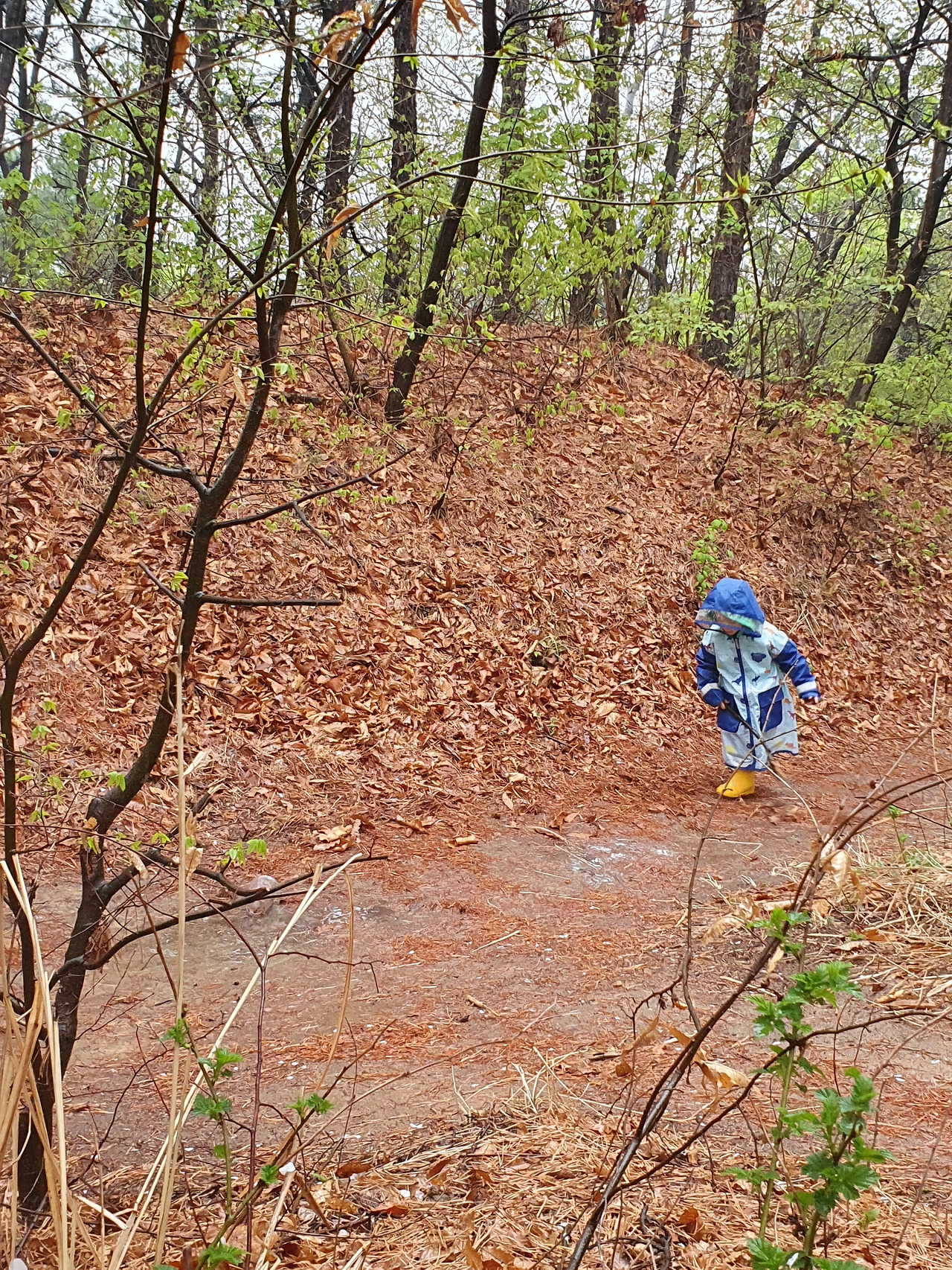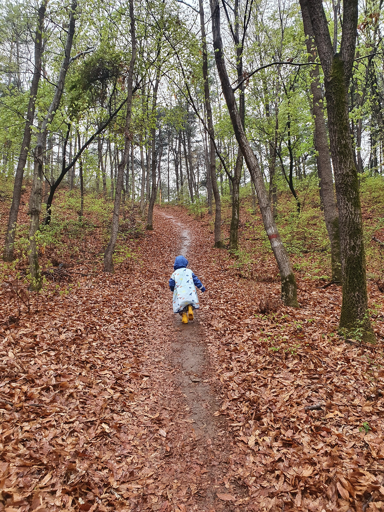 옷을 입고 준비를 하면서도 비에 젖은 흙냄새, 나무 냄새를 맡으러 간다니 내가 다 기대가 되었다.