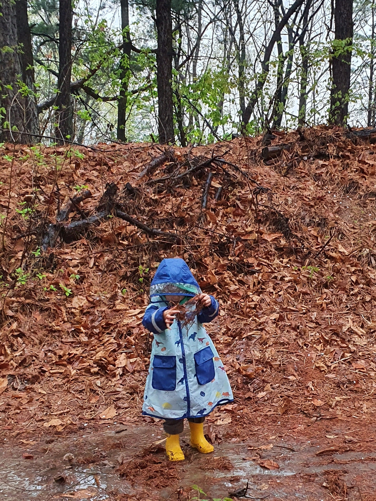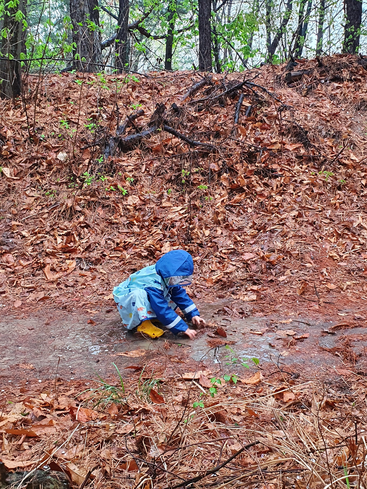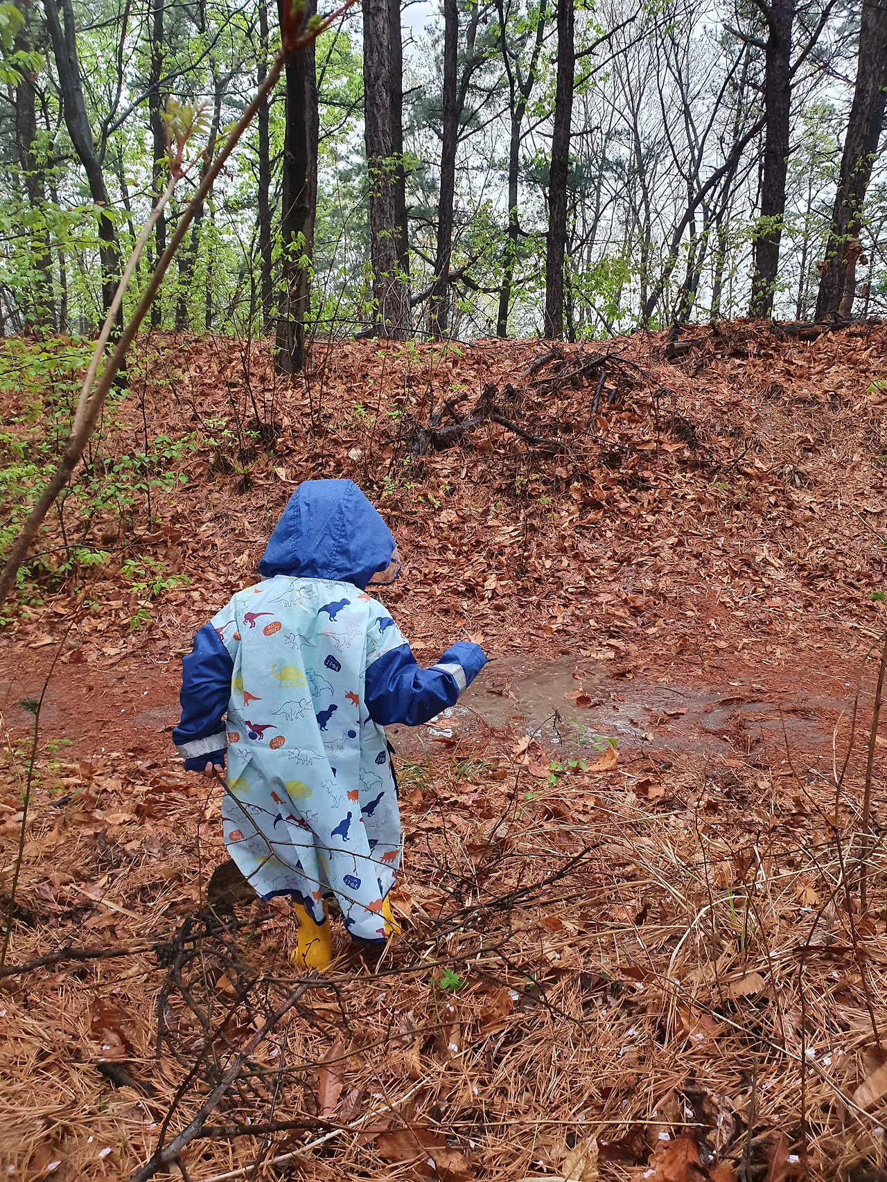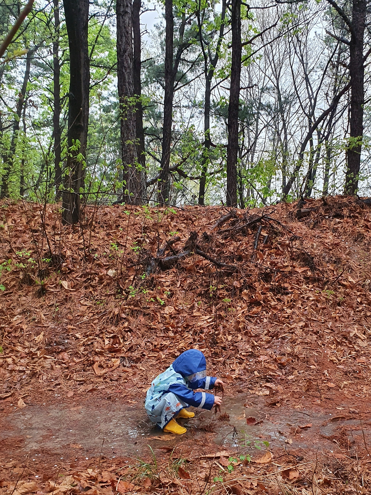 옷을 입고 준비를 하면서도 비에 젖은 흙냄새, 나무 냄새를 맡으러 간다니 내가 다 기대가 되었다.