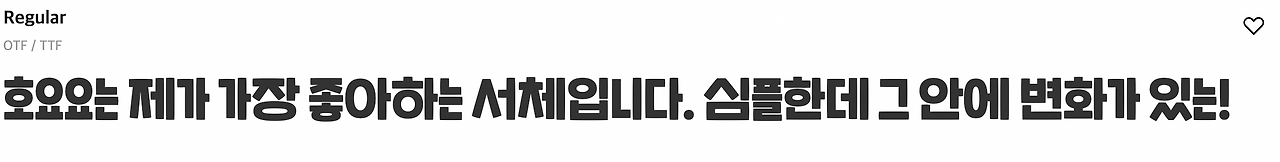 그러다 운명처럼 내 마음에 드는 폰트를 찾았다. 장식 요소를 배제하여 깔끔하지만 개별 자음의 폭이 달라 고딕 폰트가 주는 심심함을 없앴다. 예능에서 자막으로도 많이 쓰이는 걸 보고 쉽게 폰트의 이름을 외울 수 있게 되었다.