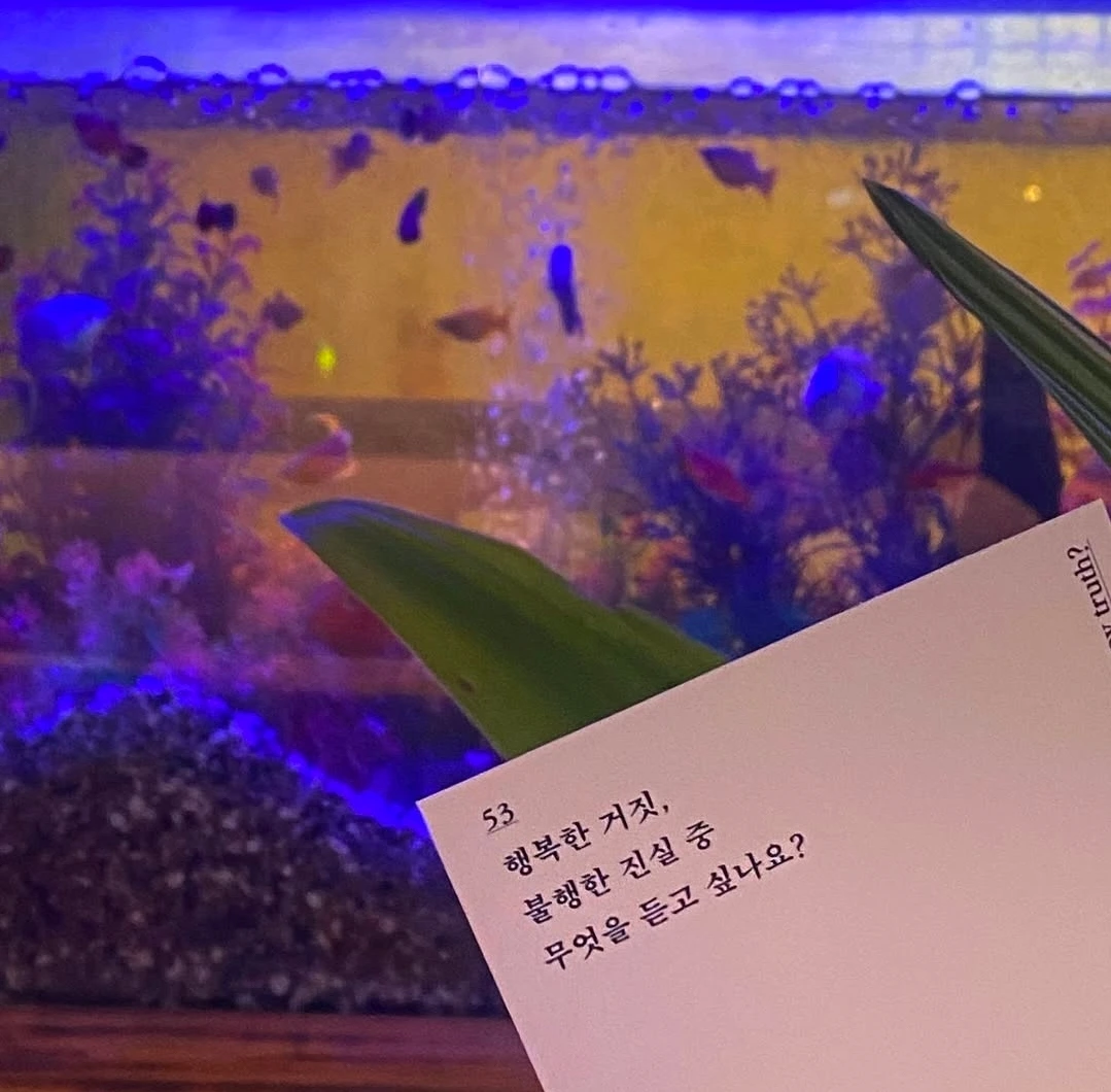 그 대화카드 한 장이 주는 질문에, 단언컨대 불행한 진실을 고르고 행복을 위해 진실을 품고 앞을 나아가길 선택했던 나이지만, 아직 준비되지 않은 이들에겐 진실이 주는 무게는 너무나 크고 무거운 저주와 같을 테니.