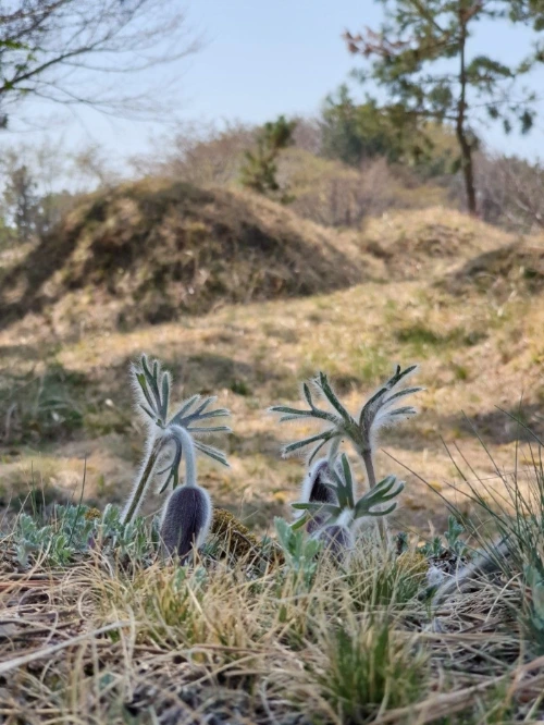 이제 할미꽃은 야생에서 보다 꽃집이나 정원에서 자주 봅니다. 꽃이 아름다워 남획이 된 데다 숲이 우거지며 양지도 줄어들었기 때문입니다. 화장 문화 확산으로 새로운 무덤도 늘지 않습니다. 할미꽃 학명은 풀사틸라(Pulsatilla koreana)로, 한국이 원산지이며 ‘종을 닮은 꽃’이란 뜻입니다. 서양인은 고개 숙인 모습에서 종을 보았지만, 우리 조상들은 ‘허리 굽은 할머니’를 보았습니다. 다른 편으로는 ‘백두옹’이라 불러 할아버지를 가리킵니다. 씨앗에 매달린 하얀 털뭉치가 노인의 백발같이 보였나 봅니다.
