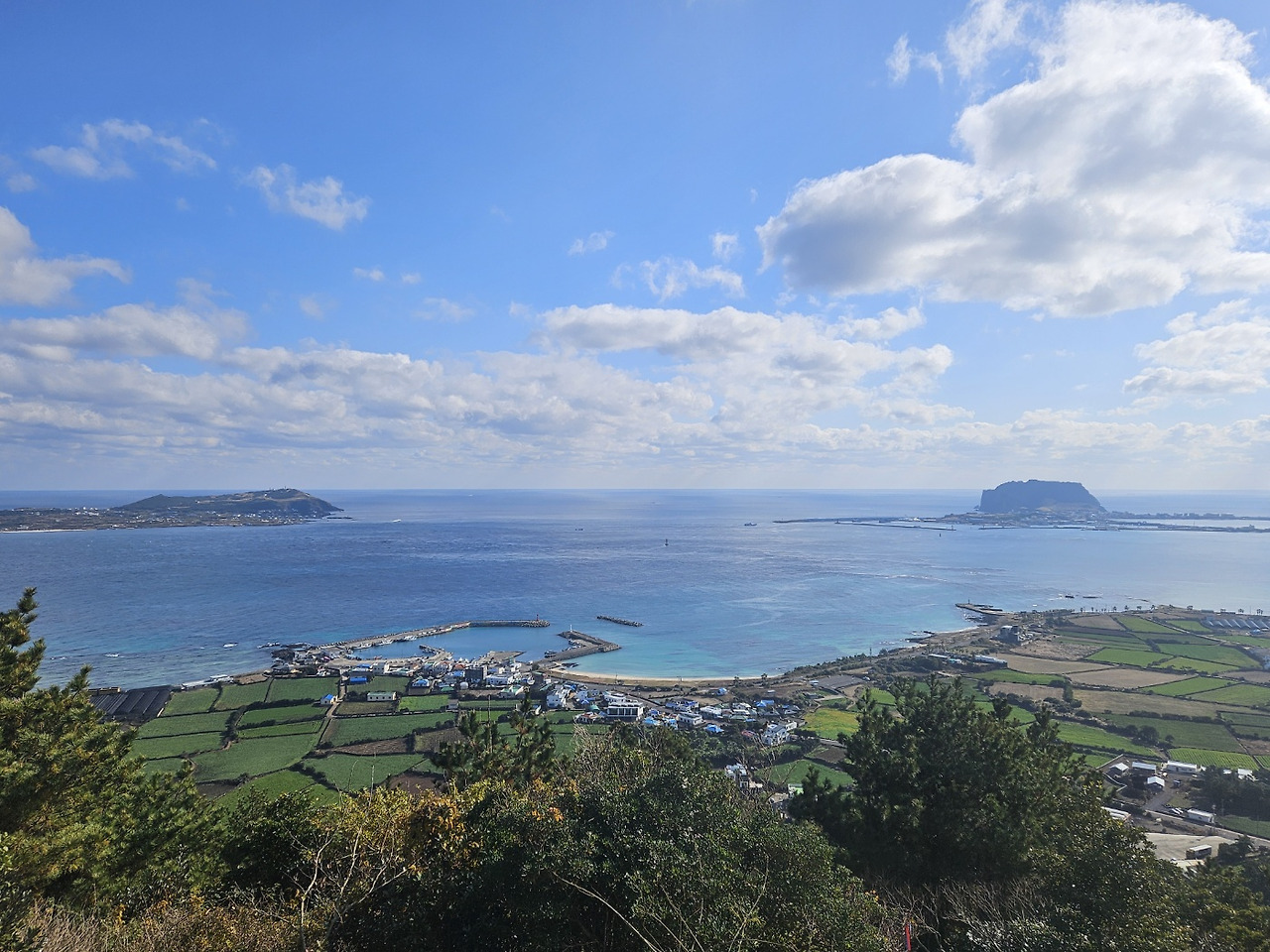 그렇지만 숙소 창문으로 바다가 조금 보이고, 밖으로 나가면 광활한 바다 위 성산일출봉과 우도가 한눈에 들어오는 경치 하나는 매일 봐도 지겹지 않을 정도로 끝내줬다.
