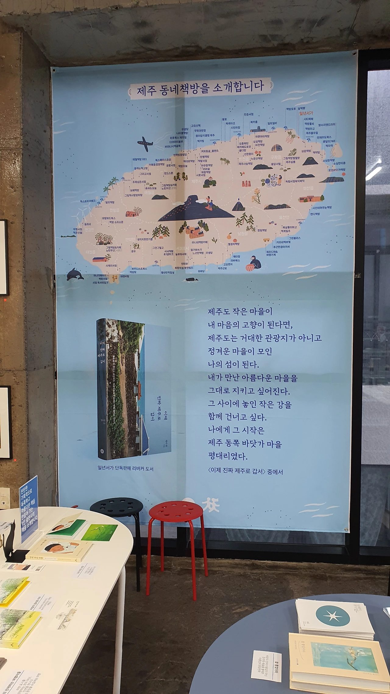 1. 제주도에 새로 생긴 책방 "일년서가"에 다녀왔다. 통영의 남해의봄날, 봄날의책방, 괴산의 숲속작은책방, 강화도의 국자와주걱 이렇게 세 분이 합심해서 만들어가는 딱 일년동안만 운영하는 팝업 책방이다.