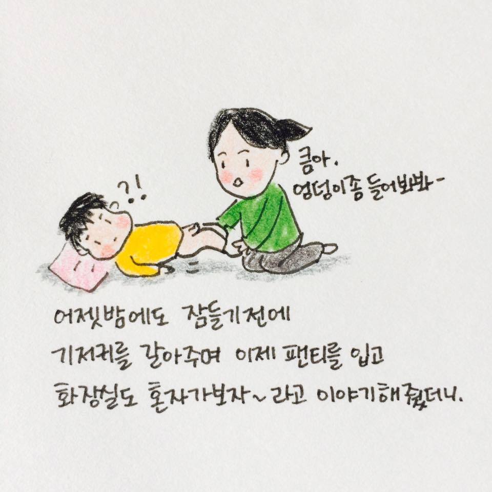 첫째 큼이때 이미 경험했던 일이 반복되는데도 마치 처음 겪는 듯이 생각했었다. 그리고 예전에 큼이가 기저귀를 떼지 못하던 시절 그렸던 큼이네집 웹툰을 다시 찾아보았다. 옛날 기록이 새록새록해졌다.