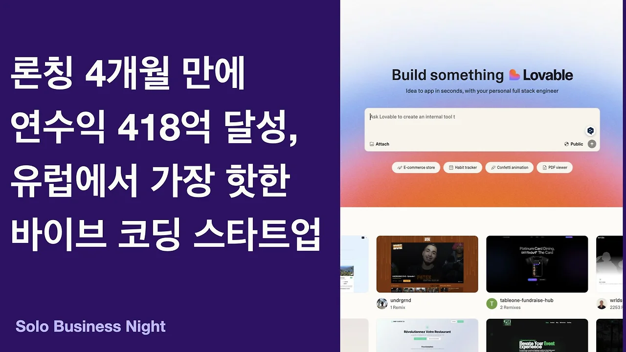 오늘은 비개발자 출신으로 온라인 창업을 꿈꾸는 분들이 관심 가질 만한 주제를 가져와 봤어요! 바로 유럽에서 가장 빠르게 성장 중인 바이브 코딩 스타트업, Lovable의 이야기입니다.