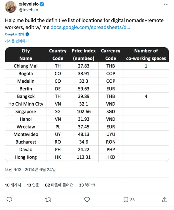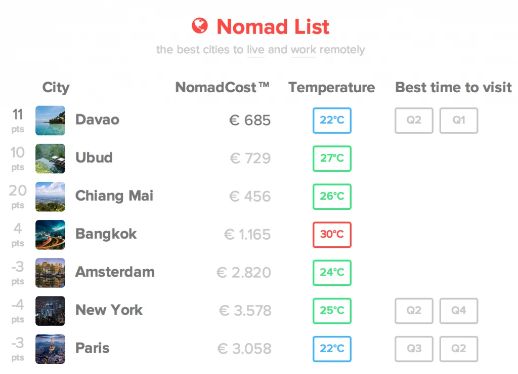 그래서 디지털 노마드 라이프 스타일에 딱 맞는 도시 리스트를 직접 만들어 보기로 합니다.