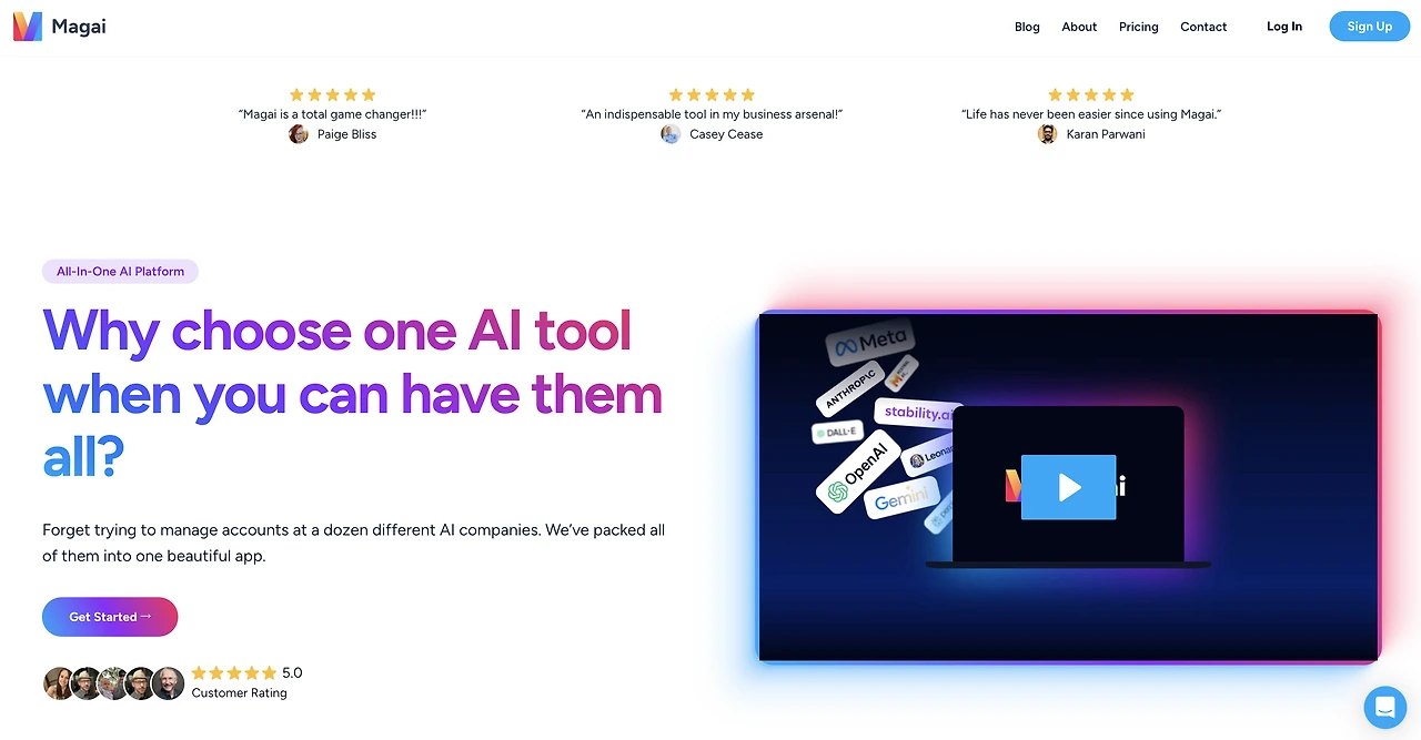 그러다 론칭 후 1년이 지난 현재는 Chat GPT, Claude, Gemini, Perplexity, Leonardo, Dall-E, Meta AI, Mistral, Stable Diffusion 등 다양한 AI 서비스를 Magai를 통해 이용할 수 있도록 발전시켰어요.