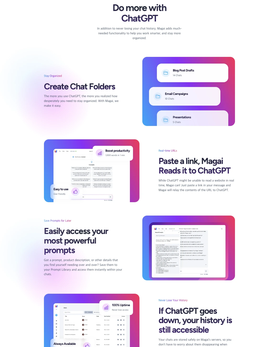 Magai는 ChatGPT 사용에 있어 더스틴이 느꼈던 사소한 불편함을 해소하기 위한 프로젝트로 시작되었어요!