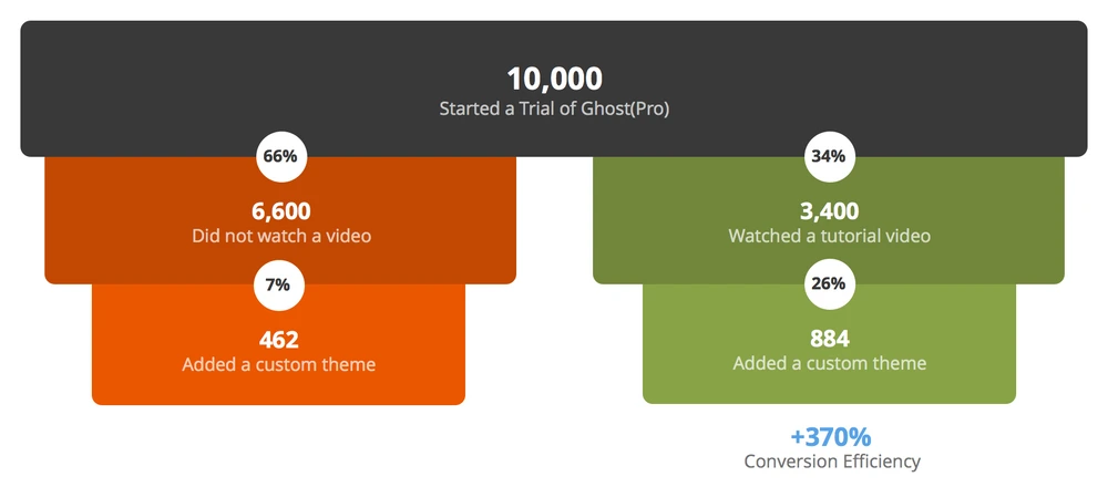 존은 Ghost에서 14일 평가판을 시작한 사용자가 유료 구독으로 전환하기까지 기본 데이터를 살펴봤습니다. 그 결과 다음과 같은 흥미로운 데이터를 발견할 수 있었어요.