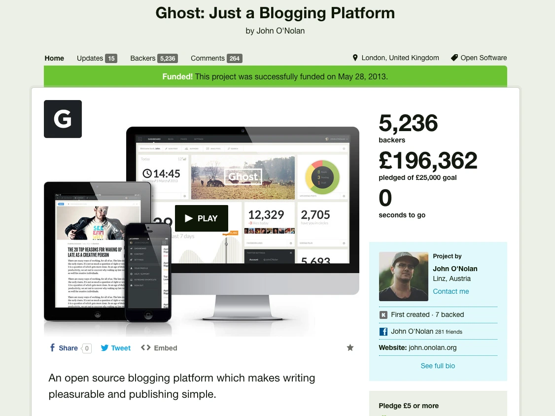 How John O’Nolan grew Ghost to $750,000/year