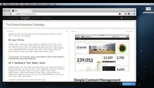 또 그는 온라인 출판과 저널리즘에 매우 관심이 많았는데요, CMS를 비롯해 많은 기능을 수행하며 커져 버린 워드프레스와 달리 디지털 출판에만 집중하는 블로깅 플랫폼이 있다면 어떤 모습일지 궁금했습니다.