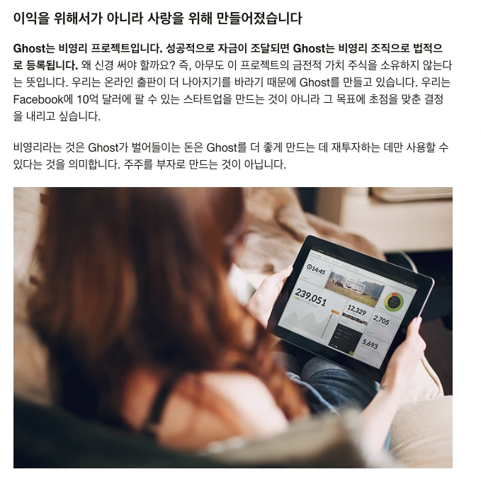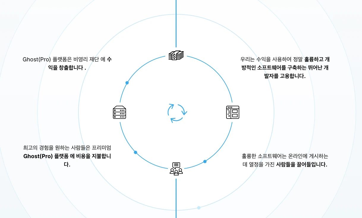 앞서 소개해 드린 바와 같이 고스트는 비영리 오픈소스 프로젝트입니다.
